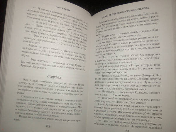 ОписаниеТолько за последние четыре года в России произошло 7 случаев расстрела учащихся в образовательных учреждениях. Кто виновен в том, что молодые люди расстреливают своих однокашников? Может, государство с его беспомощным "управлением" культурой, "заботой" о морали и нравственных ценностях? Или кинематограф, который "крутит" по всем кинотеатрам страны бездуховные и пошлые поделки, мерзкие ужастики и пошлость? Что они несут молодым людям? Агрессию, упадничество, безысходность…Этой - одной из самых тяжелых проблем нашей действительности - и посвящен новый роман Павла Астахова.В этот день у Дмитрия Свободина все пошло наперекосяк. Рано утром умерла бабушка, которая его воспитывала. Потом ему пришлось терпеть хамство санитаров и участкового. Потом ему всыпали на работе за опоздание. Потом он поругался с отчимом, который презрительно назвал его неудачником и, вдобавок, тем обидным прозвищем, которое прилипло к нему еще в школе.В школе… Именно она была источником всех его бед и неудач. И та троица одноклассников, которые нам ним издевались, - тоже виноваты, что он неудачник. И тупой физрук, который постоянно унижал его перед девчонками. И вся та жестокая, лживая, душная атмосфера 11-Б класса…И ничего в затуманенном сознании не осталось, кроме жажды мести. Чудовищной, неуправляемой, дикой, как бешеное животное. Дмитрий схватил помповый дробовик отчима, набил карманы патронами и пошел в школу, которую окончил три года назад. Как раз в это время там проводил урок известный адвокат Артем Павлов…СвернутьТолько за последние четыре года в России произошло 7 случаев расстрела учащихся в образовательных учреждениях. Кто виновен в том, что молодые люди расстреливают своих однокашников? Может, государство с его беспомощным "управлением" культурой, "заботой" о морали и нравственных ценностях? Или кинематограф, который "крутит" по всем кинотеатрам страны бездуховные и пошлые поделки, мерзкие ужастики и пошлость? Что они несут молодым людям? Агрессию, упадничество, безысходность…Этой - одной из самых тяжелых проблем нашей действительности - и посвящен новый роман Павла Астахова.В этот день у Дмитрия Свободина все пошло наперекосяк. Рано утром умерла бабушка, которая его воспитывала. Потом ему пришлось терпеть хамство санитаров и участкового. Потом ему всыпали на работе за опоздание. Потом он поругался с отчимом, который презрительно назвал его неудачником и, вдобавок, тем обидным прозвищем, которое прилипло к нему еще в школе.В школе… Именно она была источником всех его бед и неудач. И та троица одноклассников, которые нам ним издевались, - тоже виноваты, что он неудачник. И тупой физрук, который постоянно унижал его перед девчонками. И вся та жестокая, лживая, душная атмосфера 11-Б класса…И ничего в затуманенном сознании не осталось, кроме жажды мести. Чудовищной, неуправляемой, дикой, как бешеное животное. Дмитрий схватил помповый дробовик отчима, набил карманы патронами и пошел в школу, которую окончил три года назад. Как раз в это время там проводил урок известный адвокат Артем Павлов…СвернутьСвернуть