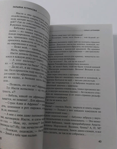 ОписаниеНасте семнадцать, она трепетная и требовательная и к тому же будущая актриса. У нее есть мать, из которой, по мнению дочери, ничего не вышло. Есть еще бабушка Марина Тимофеевна, статная красавица, почему-то ненавидящая Настиного покойного отца — гениального писателя! Но почему?.. За что?.. Что за тайны у матери с бабушкой? В одно прекрасное утро на вступительном туре Насти в театральный происходит ужасное — погибает молодая актриса, звезда сериалов. Настя с приятелем Даней становятся практически свидетелями убийства, возможно, им тоже угрожает опасность. Впрочем, опасность угрожает всей семье, состоящей исключительно из женщин!.. Татьяна Устинова — один из самых известных авторов детективов в современной российской литературе. Она написала около 50 книг, и в каждой из них можно сразу заметить удивительный и яркий талант. Но книги Татьяны Устиновой — это не просто увлекательные головоломки, но еще и очень мудрые, теплые и тонкие произведения о жизни и человеческих отношениях.СвернутьНасте семнадцать, она трепетная и требовательная и к тому же будущая актриса. У нее есть мать, из которой, по мнению дочери, ничего не вышло. Есть еще бабушка Марина Тимофеевна, статная красавица, почему-то ненавидящая Настиного покойного отца — гениального писателя! Но почему?.. За что?.. Что за тайны у матери с бабушкой? В одно прекрасное утро на вступительном туре Насти в театральный происходит ужасное — погибает молодая актриса, звезда сериалов. Настя с приятелем Даней становятся практически свидетелями убийства, возможно, им тоже угрожает опасность. Впрочем, опасность угрожает всей семье, состоящей исключительно из женщин!.. Татьяна Устинова — один из самых известных авторов детективов в современной российской литературе. Она написала около 50 книг, и в каждой из них можно сразу заметить удивительный и яркий талант. Но книги Татьяны Устиновой — это не просто увлекательные головоломки, но еще и очень мудрые, теплые и тонкие произведения о жизни и человеческих отношениях.СвернутьСвернуть