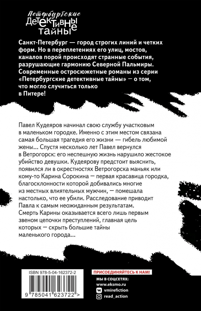 ОписаниеПавел Кудеяров начинал свою службу участковым в маленьком городке. Именно с этим местом связана самая большая трагедия его жизни - гибель любимой жены.… Спустя несколько лет Павел вернулся в Ветрогорск: его неспешную жизнь нарушило жестокое убийство девушки. Кудеярову предстоит выяснить, появился ли в окрестностях Ветрогорска маньяк или кому-то Карина Сорокина - первая красавица городка, благосклонности которой добивались многие из местных влиятельных мужчин, - помешала настолько, что ее убили. Расследование приводит Павла к самым неожиданным результатам. Смерть Карины оказывается всего лишь первым звеном цепочки преступлений, главная цель которых - скрыть большие тайны маленького города… Екатерина Островская - профессиональный журналист, литератор и кинодраматург, живет и работает в Санкт-Петербурге. Окончила факультет журналистики СПбГУ. В авторском портфеле Екатерины Островской уже более 30 остросюжетных романов. Она увлекается музыкой, историей, горными лыжами. И, конечно, продолжает работу над новыми книгами.СвернутьПавел Кудеяров начинал свою службу участковым в маленьком городке. Именно с этим местом связана самая большая трагедия его жизни - гибель любимой жены.… Спустя несколько лет Павел вернулся в Ветрогорск: его неспешную жизнь нарушило жестокое убийство девушки. Кудеярову предстоит выяснить, появился ли в окрестностях Ветрогорска маньяк или кому-то Карина Сорокина - первая красавица городка, благосклонности которой добивались многие из местных влиятельных мужчин, - помешала настолько, что ее убили. Расследование приводит Павла к самым неожиданным результатам. Смерть Карины оказывается всего лишь первым звеном цепочки преступлений, главная цель которых - скрыть большие тайны маленького города… Екатерина Островская - профессиональный журналист, литератор и кинодраматург, живет и работает в Санкт-Петербурге. Окончила факультет журналистики СПбГУ. В авторском портфеле Екатерины Островской уже более 30 остросюжетных романов. Она увлекается музыкой, историей, горными лыжами. И, конечно, продолжает работу над новыми книгами.СвернутьСвернуть
