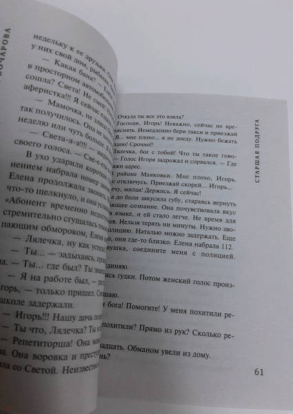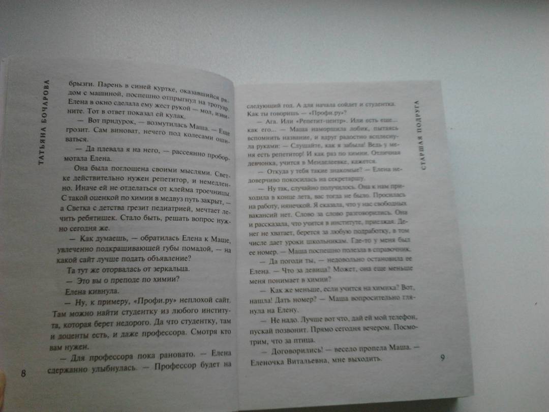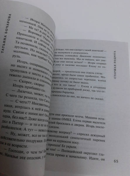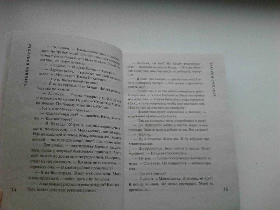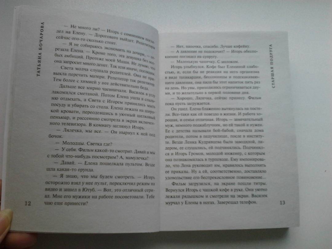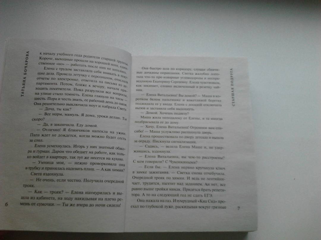 ОписаниеЕлена Громова — главная героиня нового детективно-мелодраматического романа Татьяны Бочаровой «Старшая подруга» — заведует столичным детским садом, держит под каблуком супруга Игоря и обожает дочь Светлану. Света нуждается в дополнительных занятиях по химии, и Елена нанимает ей репетитора – студентку Наталью Аникину. Преподавателем она оказывается прекрасным, Светка получает пятерки, и вскоре девушки становятся лучшими подругами. Но однажды Елена возвращается домой раньше обычного и становится свидетельницей того, как Наталья соблазняет ее мужа. Она прогоняет Наталью, но через некоторое время готова с ней помириться, потому что Светка рыдает и тоскует без своей любимой подруги. Телефон Натальи не отвечает, и Елена отправляется мириться с ней в общежитие института. Однако там она узнает, что Наталья Аникина в ВУЗе уже не учится, она беременна и уехала рожать в родной город. А когда выясняется, что прошлой весной у Натальи украли паспорт, Елена понимает, что девушка, которая представилась ей как Наталья Аникина, на самом деле мошенница…СвернутьЕлена Громова — главная героиня нового детективно-мелодраматического романа Татьяны Бочаровой «Старшая подруга» — заведует столичным детским садом, держит под каблуком супруга Игоря и обожает дочь Светлану. Света нуждается в дополнительных занятиях по химии, и Елена нанимает ей репетитора – студентку Наталью Аникину. Преподавателем она оказывается прекрасным, Светка получает пятерки, и вскоре девушки становятся лучшими подругами. Но однажды Елена возвращается домой раньше обычного и становится свидетельницей того, как Наталья соблазняет ее мужа. Она прогоняет Наталью, но через некоторое время готова с ней помириться, потому что Светка рыдает и тоскует без своей любимой подруги. Телефон Натальи не отвечает, и Елена отправляется мириться с ней в общежитие института. Однако там она узнает, что Наталья Аникина в ВУЗе уже не учится, она беременна и уехала рожать в родной город. А когда выясняется, что прошлой весной у Натальи украли паспорт, Елена понимает, что девушка, которая представилась ей как Наталья Аникина, на самом деле мошенница…СвернутьСвернуть