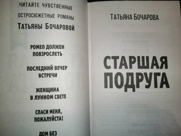 ---Татьяна Бочарова: Старшая подругаРусская классическая и современная литератураЗарубежная художественная литератураРусская художественная литератураФэнтезиДраматургияПоэзияПриключенияФантастикаЭпос и фольклорКлассическая прозаАфоризмыИсторическая прозаДетективыБасниСентиментальная прозаОтечественный боевикСовременная прозаМолодежная литератураЗарубежная классическая и современная литература