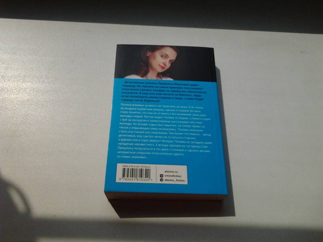 ОписаниеПолина впервые за много лет приехала на море. В ее планы не входили курортные романы, однако в первый же день стало понятно, что она не останется без внимания сразу двоих молодых людей. Костик водил Полину по барам, а Никита ездил с ней на экскурсии и захватывающе рассказывал местные легенды. Однако вскоре отдых был омрачен - на пляже прямо на глазах у отдыхающих умер незнакомец, и Полина невольно стала участницей расследования. Тем более что Никита - автор детективов, ему сам бог велел не остаться в стороне, а вдвоем они и горы свернут! Интерес Полины не остановило даже нападение неизвестного. А вскоре пропала ее сестренка Оля! Пришлось погрузиться в это дело с головой и сделать весьма неприятное открытие относительно одного из новых знакомых… Людмила Мартова - мастер увлекательной детективной мелодрамы, автор захватывающих остросюжетных историй. Их отличают закрученная детективная интрига, лихой финал с неожиданной развязкой и, конечно же, яркая любовная линия. Героини романов Людмилы Мартовой - современные молодые женщины, которые точно знают, чего хотят от жизни.СвернутьПолина впервые за много лет приехала на море. В ее планы не входили курортные романы, однако в первый же день стало понятно, что она не останется без внимания сразу двоих молодых людей. Костик водил Полину по барам, а Никита ездил с ней на экскурсии и захватывающе рассказывал местные легенды. Однако вскоре отдых был омрачен - на пляже прямо на глазах у отдыхающих умер незнакомец, и Полина невольно стала участницей расследования. Тем более что Никита - автор детективов, ему сам бог велел не остаться в стороне, а вдвоем они и горы свернут! Интерес Полины не остановило даже нападение неизвестного. А вскоре пропала ее сестренка Оля! Пришлось погрузиться в это дело с головой и сделать весьма неприятное открытие относительно одного из новых знакомых… Людмила Мартова - мастер увлекательной детективной мелодрамы, автор захватывающих остросюжетных историй. Их отличают закрученная детективная интрига, лихой финал с неожиданной развязкой и, конечно же, яркая любовная линия. Героини романов Людмилы Мартовой - современные молодые женщины, которые точно знают, чего хотят от жизни.СвернутьСвернуть
