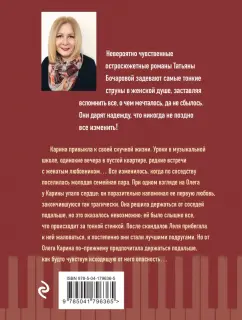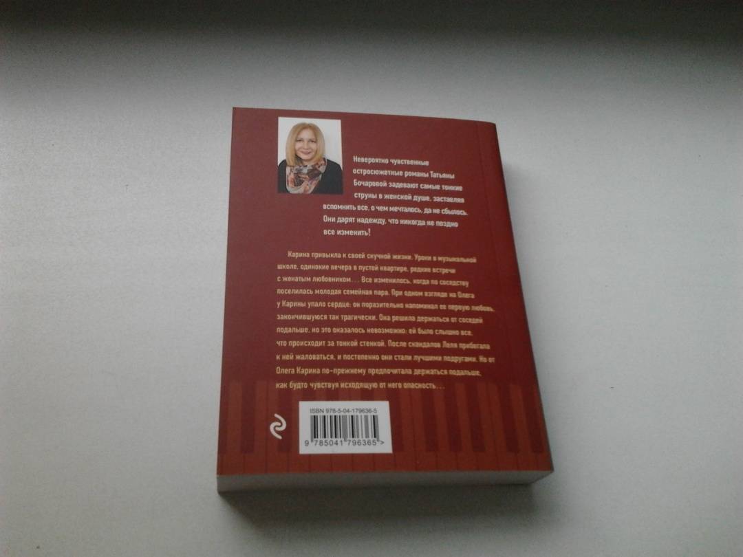 ОписаниеКарина привыкла к своей скучной жизни. Уроки в музыкальной школе, одинокие вечера в пустой квартире, редкие встречи с женатым любовником… Все изменилось, когда по соседству поселилась молодая семейная пара. При одном взгляде на Олега у Карины упало сердце: он поразительно напоминал ее первую любовь, закончившуюся так трагически. Она решила держаться от соседей подальше, но это оказалось невозможно: ей было слышно все, что происходит за тонкой стенкой. После скандалов Леля прибегала к ней жаловаться, и постепенно они стали лучшими подругами. Но от Олега Карина по-прежнему предпочитала держаться подальше, как будто чувствуя исходящую от него опасность… Невероятно чувственные остросюжетные романы Татьяны Бочаровой из серии «Детектив сильных страстей» задевают самые тонкие струны в женской душе, заставляя вспомнить все, о чем мечталось, да не сбылось. Они дарят надежду, что никогда не поздно все изменить!Карина привыкла к своей скучной жизни. Уроки в музыкальной школе, одинокие вечера в пустой квартире, редкие встречи с женатым любовником… Все изменилось, когда по соседству поселилась молодая семейная пара. При одном взгляде на Олега у Карины упало сердце: он поразительно напоминал ее первую любовь, закончившуюся так трагически. Она решила держаться от соседей подальше, но это оказалось невозможно: ей было слышно все, что происходит за тонкой стенкой. После скандалов Леля прибегала к ней жаловаться, и постепенно они стали лучшими подругами. Но от Олега Карина по-прежнему предпочитала держаться подальше, как будто чувствуя исходящую от него опасность… Невероятно чувственные остросюжетные романы Татьяны Бочаровой из серии «Детектив сильных страстей» задевают самые тонкие струны в женской душе, заставляя вспомнить все, о чем мечталось, да не сбылось. Они дарят надежду, что никогда не поздно все изменить!