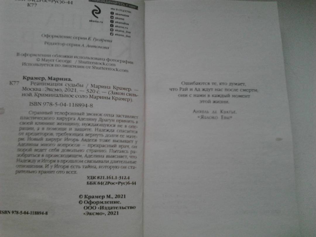---Марина Крамер: Реанимация судьбыРусская классическая и современная литератураДетектив. Остросюжетная литератураЗарубежная художественная литератураРусская художественная литератураФэнтезиДраматургияПоэзияПриключенияФантастикаЭпос и фольклорКлассическая прозаАфоризмыИсторическая прозаДетективыБасниСентиментальная прозаОтечественный боевикСовременная прозаМолодежная литератураЗарубежная классическая и современная литература