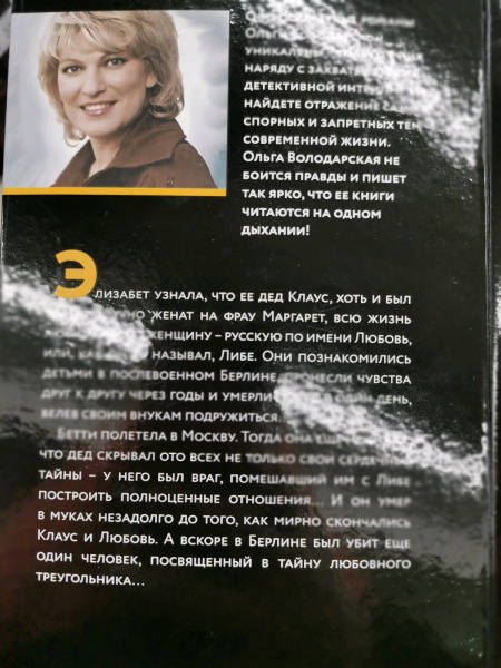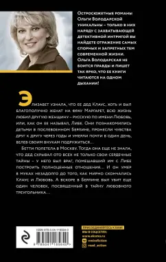 ОписаниеЭлизабет узнала, что ее дед Клаус, хоть и был благополучно женат на фрау Маргарет, всю жизнь любил другую женщину - русскую по имени Любовь, или, как он ее называл, Либе. Они познакомились детьми в послевоенном Берлине, пронесли чувства друг к другу через годы и умерли почти в один день, велев своим внукам подружиться...Бетти полетела в Москву. Тогда она еще не знала, что дед скрывал ото всех не только свои сердечные тайны - у него был враг, помешавший им с Либе построить полноценные отношения... И он умер в муках незадолго до того, как мирно скончались Клаус и Любовь. А вскоре в Берлине был убит еще один человек, посвященный в тайну любовного треугольника...Главная героиня нового остросюжетного романа Ольги Володарской «Обет без молчания» Элизабет родилась в Берлине, отучилась в Лондоне, а потом вернулась в