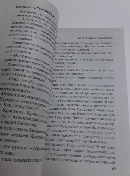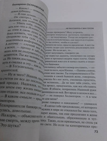 ОписаниеДля театроведа Нади Черкашиной настали черные дни - журнал "Подмостки", где она работала, медленно умирал. На что жить? Где найти новую работу? Как назло, Наде срочно понадобилась крупная сумма: подруга перед смертью оставила ей в дар полотно Ван Гога - неизвестный вариант "Едоков картофеля". Но у Нади сразу начались проблемы! Явившийся к Черкашиной агент Интерпола заявил: картина поддельная, к тому же краденая, и Надя должна вернуть ее предыдущему владельцу. Подумав, девушка решила выкупить полотно, а деньги взять у… бывшего мужа, известного актера Александра Холмогорова. Правда, для этого придется снова выйти за него замуж, хотя после измены Надя уже не верила в его вдруг вспыхнувшую страсть. Она не знала: Александр просто играет в любовь, и ставка за эту роль очень высока - его собственная жизнь. Холмогорова шантажируют, заставляя любой ценой забрать у бывшей жены картину Ван Гога... Татьяна Устинова рекомендует: "Островская играет жизнями, тасует героев, заставляет их совершать неожиданные и странные поступки, а читателя - с замиранием сердца следить за ними и гадать: сработает, не сработает, выберутся, не выберутся!.. Сюжет то и дело поворачивает в какую-то другую сторону и на полной скорости несется дальше. Это почти невозможно, но ей удается удержаться на этих виражах!.. И очень хочется, чтобы у героев все получилось!.. И финал! Он всегда феерический, во всех отношениях".СвернутьДля театроведа Нади Черкашиной настали черные дни - журнал "Подмостки", где она работала, медленно умирал. На что жить? Где найти новую работу? Как назло, Наде срочно понадобилась крупная сумма: подруга перед смертью оставила ей в дар полотно Ван Гога - неизвестный вариант "Едоков картофеля". Но у Нади сразу начались проблемы! Явившийся к Черкашиной агент Интерпола заявил: картина поддельная, к тому же краденая, и Надя должна вернуть ее предыдущему владельцу. Подумав, девушка решила выкупить полотно, а деньги взять у… бывшего мужа, известного актера Александра Холмогорова. Правда, для этого придется снова выйти за него замуж, хотя после измены Надя уже не верила в его вдруг вспыхнувшую страсть. Она не знала: Александр просто играет в любовь, и ставка за эту роль очень высока - его собственная жизнь. Холмогорова шантажируют, заставляя любой ценой забрать у бывшей жены картину Ван Гога... Татьяна Устинова рекомендует: "Островская играет жизнями, тасует героев, заставляет их совершать неожиданные и странные поступки, а читателя - с замиранием сердца следить за ними и гадать: сработает, не сработает, выберутся, не выберутся!.. Сюжет то и дело поворачивает в какую-то другую сторону и на полной скорости несется дальше. Это почти невозможно, но ей удается удержаться на этих виражах!.. И очень хочется, чтобы у героев все получилось!.. И финал! Он всегда феерический, во всех отношениях".СвернутьСвернуть