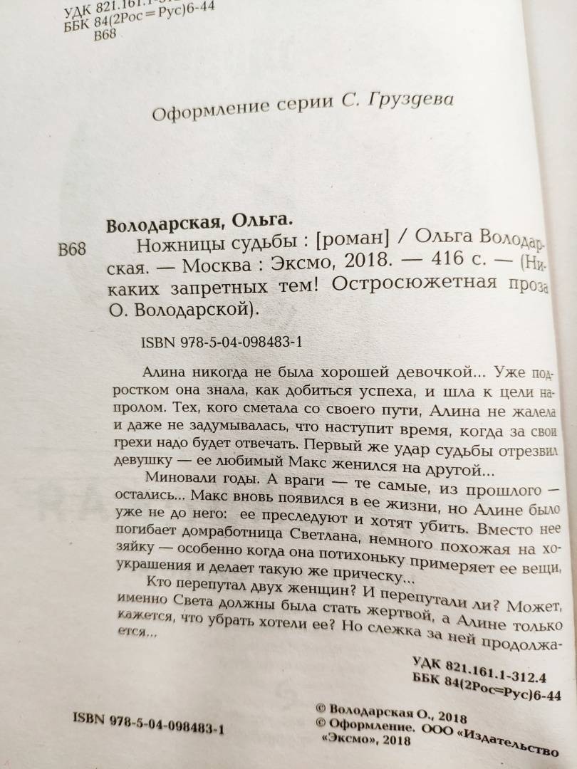 ---Ольга Володарская: Ножницы судьбыРусская классическая и современная литератураЗарубежная художественная литератураРусская художественная литератураФэнтезиДраматургияПоэзияПриключенияФантастикаЭпос и фольклорКлассическая прозаАфоризмыИсторическая прозаДетективыБасниСентиментальная прозаОтечественный боевикСовременная прозаМолодежная литератураЗарубежная классическая и современная литература
