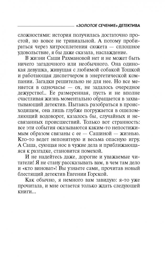 Объем, стр. 352 ISBN 978-5-04-098497-8 Автор Горская Евгения Серия Московский детектив (обл) Минимальный возраст 16+ Год издания книги 2018 Тип обложки Мягкий переплет Иллюстрации Без иллюстраций Вес, г 144г Размеры 165х105х25 мм - Отзывы