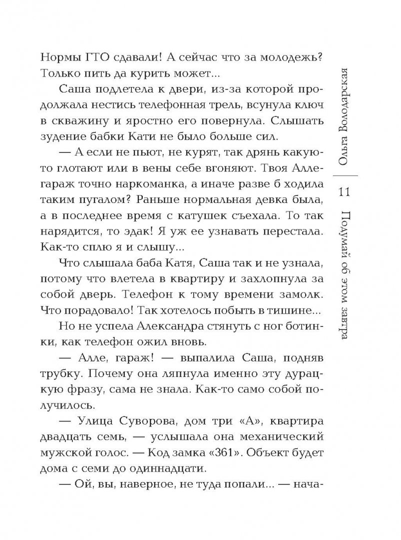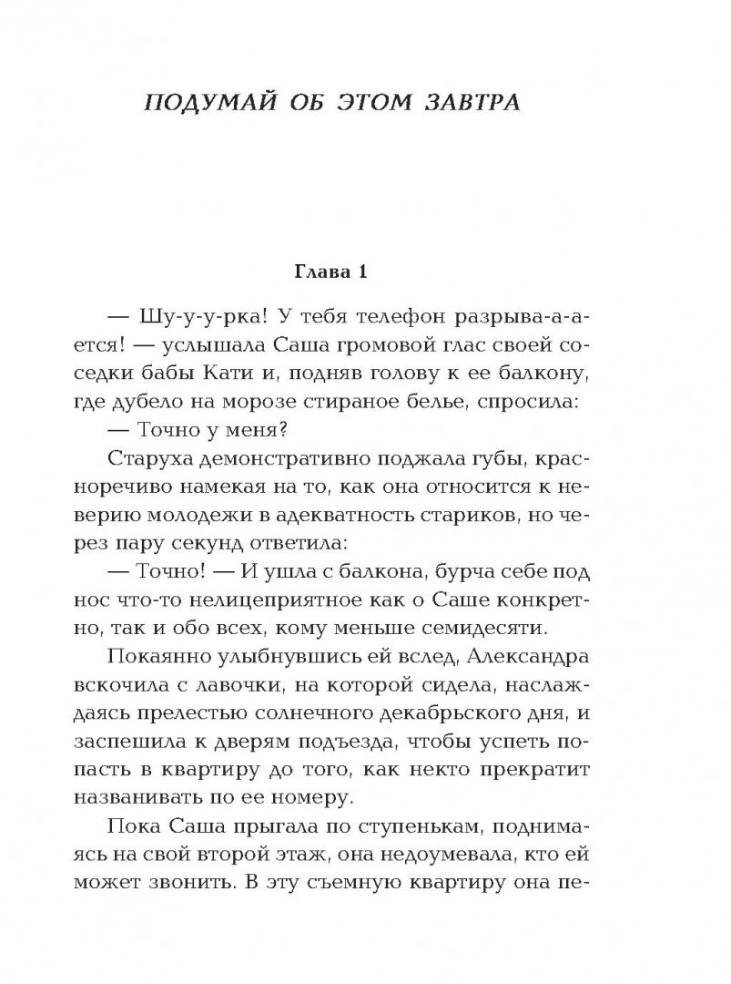 ОписаниеСаша сняла квартиру, надеясь изменить свою жизнь. Не до старости же обитать под одной крышей с мамой! Пора уже привыкать к самостоятельности и устраивать судьбу. А то ни мужа, ни жениха, одна работа да хобби, как у старой девы… Буквально через пару дней ей позвонили. Вернее, к телефону должна была подойти хозяйка квартиры, но именно Саша прослушала сообщение: "Заказ должен быть выполнен сегодня, клиент ждет". Ничего не понимая, Александра отправилась по названному адресу. "Клиентом" оказался эффектный молодой мужчина, понятия не имевший, для чего к нему прислали Сашу. Пришлось ей с позором ретироваться, однако когда девушка выходила из подъезда, раздался выстрел! Но зачем кому-то понадобилось в нее стрелять?Саша сняла квартиру, надеясь изменить свою жизнь. Не до старости же обитать под одной крышей с мамой! Пора уже привыкать к самостоятельности и устраивать судьбу. А то ни мужа, ни жениха, одна работа да хобби, как у старой девы… Буквально через пару дней ей позвонили. Вернее, к телефону должна была подойти хозяйка квартиры, но именно Саша прослушала сообщение: "Заказ должен быть выполнен сегодня, клиент ждет". Ничего не понимая, Александра отправилась по названному адресу. "Клиентом" оказался эффектный молодой мужчина, понятия не имевший, для чего к нему прислали Сашу. Пришлось ей с позором ретироваться, однако когда девушка выходила из подъезда, раздался выстрел! Но зачем кому-то понадобилось в нее стрелять?