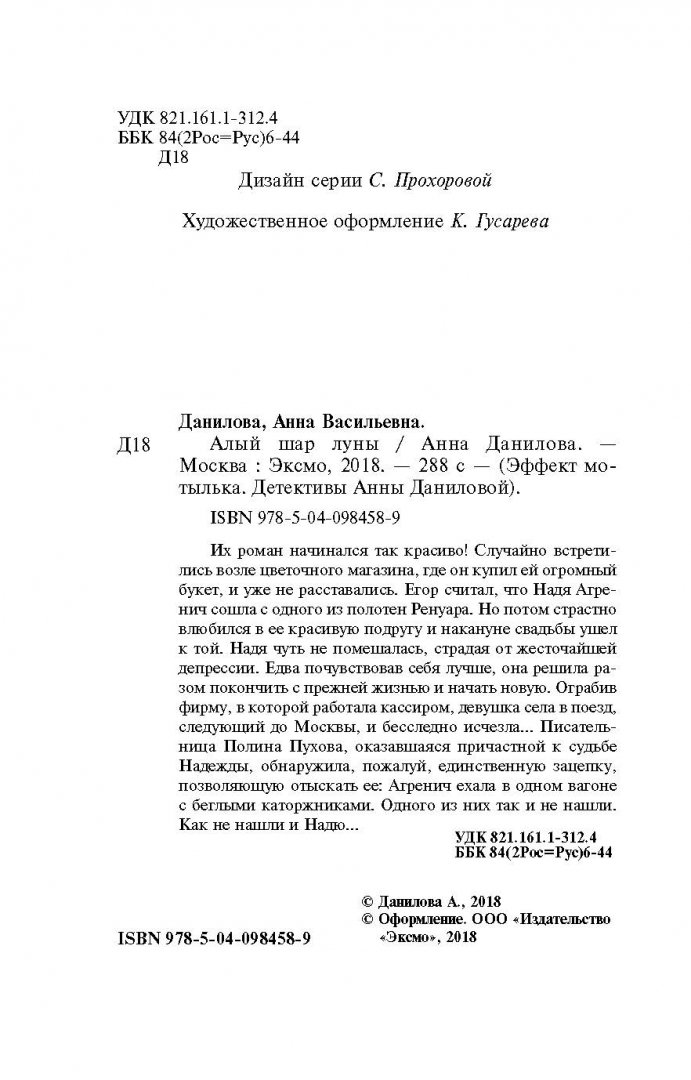 ---Анна Данилова: Алый шар луныРусская классическая и современная литератураДетектив. Остросюжетная литератураЗарубежная художественная литератураРусская художественная литератураФэнтезиДраматургияПоэзияПриключенияФантастикаЭпос и фольклорКлассическая прозаАфоризмыИсторическая прозаДетективыБасниСентиментальная прозаОтечественный боевикСовременная прозаМолодежная литератураЗарубежная классическая и современная литература
