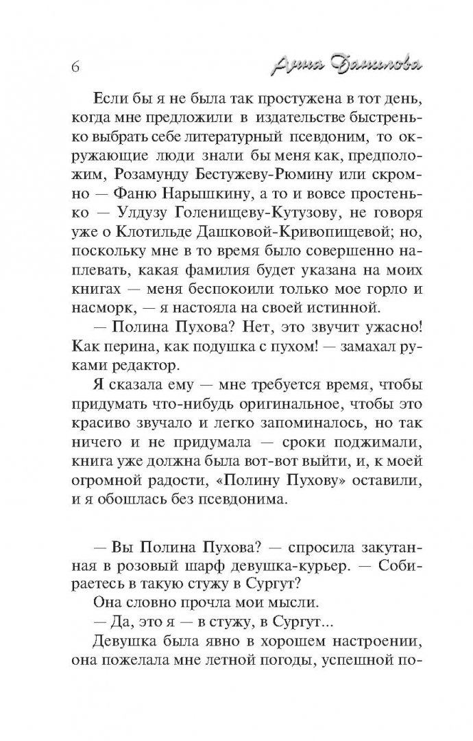 ОписаниеИх роман начинался так красиво! Случайно встретились возле цветочного магазина, где он купил ей огромный букет, и уже не расставались. Егор считал, что Надя Агренич сошла с одного из полотен Ренуара. Но потом страстно влюбился в ее красивую подругу и накануне свадьбы ушел к той. Надя чуть не помешалась, страдая от жесточайшей депрессии. Едва почувствовав себя лучше, она решила разом покончить с прежней жизнью и начать новую. Ограбив фирму, в которой работала кассиром, девушка села в поезд, следующий до Москвы, и бесследно исчезла... Писательница Полина Пухова, оказавшаяся причастной к судьбе Надежды, обнаружила, пожалуй, единственную зацепку, позволяющую отыскать ее: Агренич ехала в одном вагоне с беглыми каторжниками. Одного из них так и не нашли. Как не нашли и Надю...Их роман начинался так красиво! Случайно встретились возле цветочного магазина, где он купил ей огромный букет, и уже не расставались. Егор считал, что Надя Агренич сошла с одного из полотен Ренуара. Но потом страстно влюбился в ее красивую подругу и накануне свадьбы ушел к той. Надя чуть не помешалась, страдая от жесточайшей депрессии. Едва почувствовав себя лучше, она решила разом покончить с прежней жизнью и начать новую. Ограбив фирму, в которой работала кассиром, девушка села в поезд, следующий до Москвы, и бесследно исчезла... Писательница Полина Пухова, оказавшаяся причастной к судьбе Надежды, обнаружила, пожалуй, единственную зацепку, позволяющую отыскать ее: Агренич ехала в одном вагоне с беглыми каторжниками. Одного из них так и не нашли. Как не нашли и Надю...