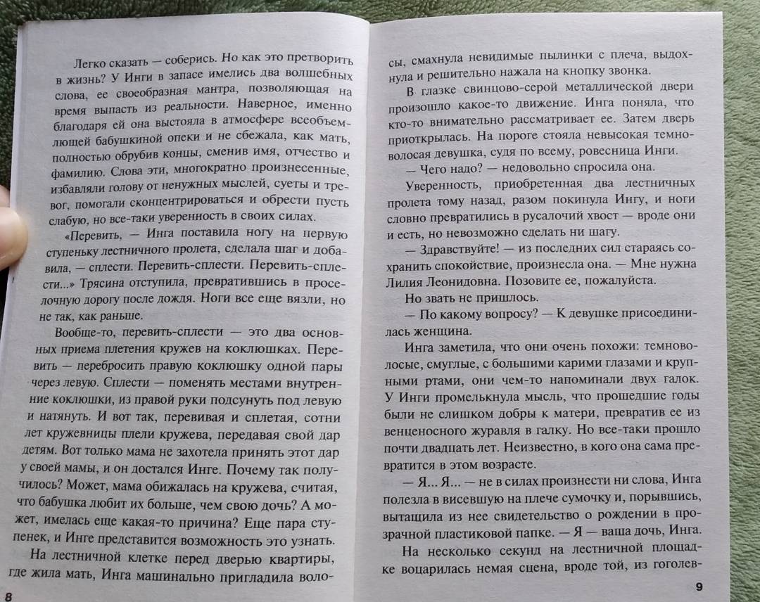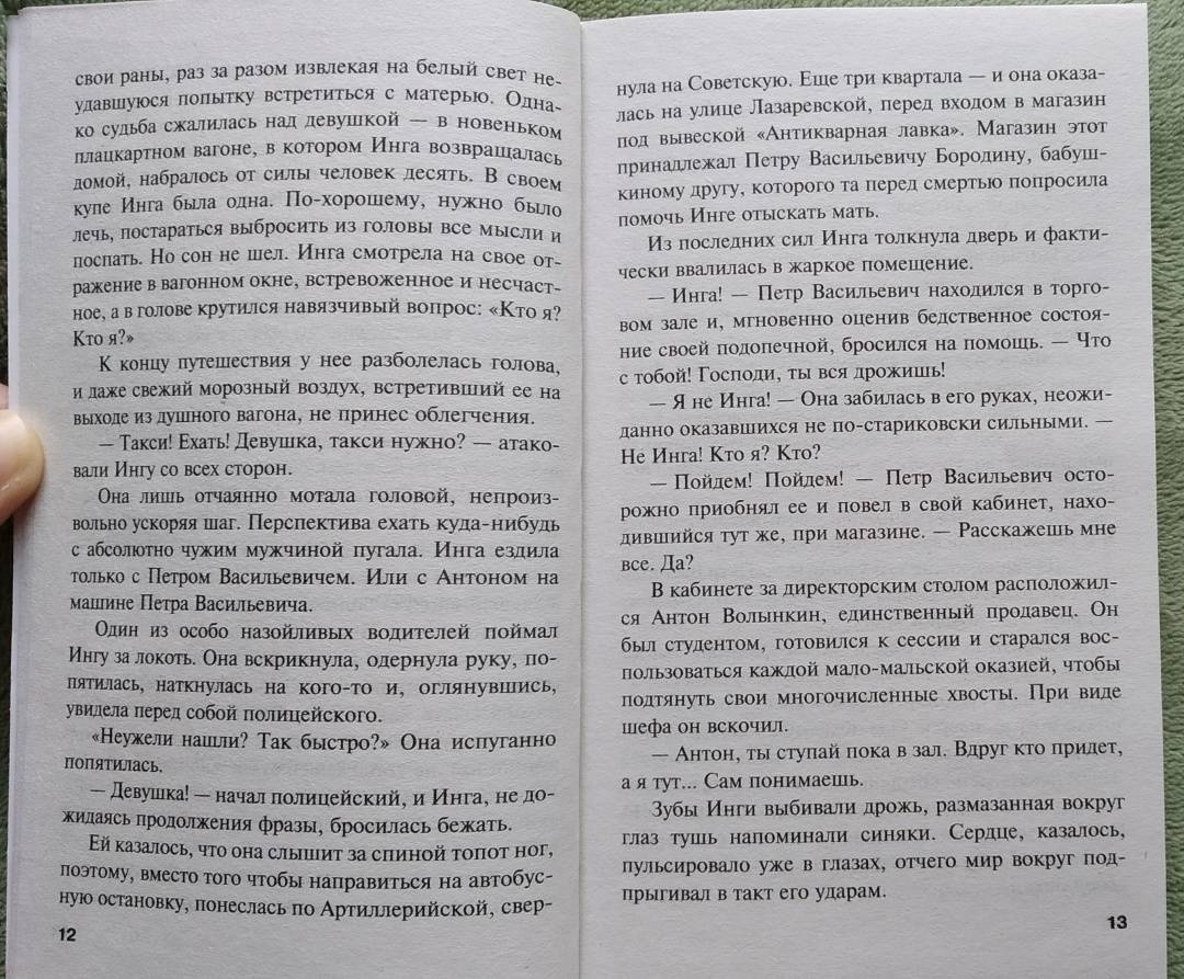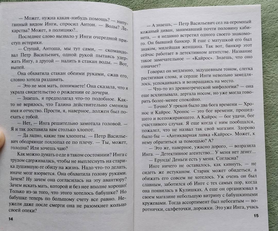 ОписаниеВ детективное агентство "Кайрос" обратился Петр Бородин с просьбой найти мать Инги, внучки его старой знакомой. У него есть собственные соображения по поводу тайны происхождения девушки, но он не спешил ими делиться…У Инги сохранились смутные воспоминания о матери, ведь ее вырастила бабушка. Вся жизнь девушки сосредоточена в коклюшках, на которых она плетет удивительной красоты кружева. Но действительность грубо врывается в ее уютный мирок, когда кто-то присылает ей письмо с угрозами…Некоторым тайнам лучше оставаться в прошлом. Когда их извлекают на свет, это может привести к непредсказуемым последствиям…В детективное агентство "Кайрос" обратился Петр Бородин с просьбой найти мать Инги, внучки его старой знакомой. У него есть собственные соображения по поводу тайны происхождения девушки, но он не спешил ими делиться…У Инги сохранились смутные воспоминания о матери, ведь ее вырастила бабушка. Вся жизнь девушки сосредоточена в коклюшках, на которых она плетет удивительной красоты кружева. Но действительность грубо врывается в ее уютный мирок, когда кто-то присылает ей письмо с угрозами…Некоторым тайнам лучше оставаться в прошлом. Когда их извлекают на свет, это может привести к непредсказуемым последствиям…