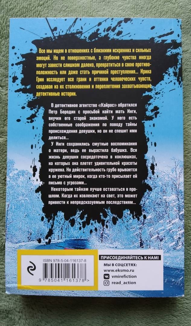 Объем, стр. 320 ISBN 978-5-04-116137-8 Автор Грин Ирина Владимировна Серия Переплетение чувств. Детективы Ирины Грин Минимальный возраст 16+ Год издания книги 2020 Тип обложки Мягкий переплет Иллюстрации Без иллюстраций Вес, г 134г Размеры 165х105х10 мм - Отзывы