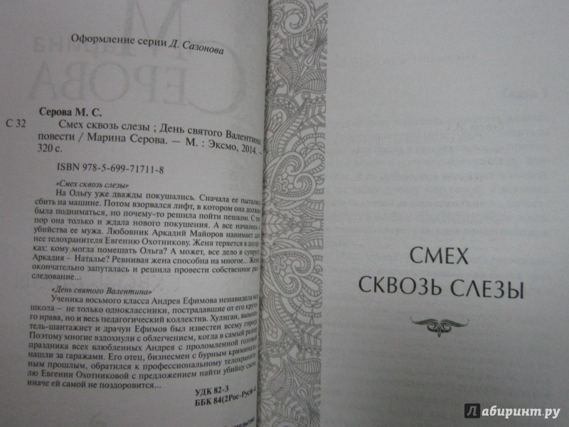 ОписаниеСмех сквозь слезыНа Ольгу уже дважды покушались. Сначала ее пытались сбить на машине. Потом взорвался лифт, в котором она должна была подниматься, но почему-то решила пойти пешком. С тех пор она только и ждала нового покушения. А все началось с убийства ее мужа. Любовник Аркадий Майоров, нанимает для нее телохранителя Евгению Охотникову. Женя теряется в догадках: кому могла помешать Ольга? А может все дело в супруге Аркадия - Наталье? Ревнивая жена способна на многое… Женя окончательно запуталась и решила провести собственное расследование…День святого ВалентинаУченика восьмого класса Андрея Ефимова ненавидела вся школа - не только одноклассники, пострадавшие от его крутого нрава, но и весь педагогический коллектив. Хулиган, вымогатель-шантажист и драчун Ефимов был известен всему городу. Поэтому многие вздохнули с облегчением, когда в самый разгар праздника Всех влюбленных Андрея с проломленной головой нашли за гаражами. Его отец бизнесмен с бурным криминальным прошлым обратился к профессиональному телохранителю Евгении Охотниковой с предложением найти убийцу сына, иначе ей самой не поздоровится...СвернутьСмех сквозь слезыНа Ольгу уже дважды покушались. Сначала ее пытались сбить на машине. Потом взорвался лифт, в котором она должна была подниматься, но почему-то решила пойти пешком. С тех пор она только и ждала нового покушения. А все началось с убийства ее мужа. Любовник Аркадий Майоров, нанимает для нее телохранителя Евгению Охотникову. Женя теряется в догадках: кому могла помешать Ольга? А может все дело в супруге Аркадия - Наталье? Ревнивая жена способна на многое… Женя окончательно запуталась и решила провести собственное расследование…День святого ВалентинаУченика восьмого класса Андрея Ефимова ненавидела вся школа - не только одноклассники, пострадавшие от его крутого нрава, но и весь педагогический коллектив. Хулиган, вымогатель-шантажист и драчун Ефимов был известен всему городу. Поэтому многие вздохнули с облегчением, когда в самый разгар праздника Всех влюбленных Андрея с проломленной головой нашли за гаражами. Его отец бизнесмен с бурным криминальным прошлым обратился к профессиональному телохранителю Евгении Охотниковой с предложением найти убийцу сына, иначе ей самой не поздоровится...СвернутьСвернуть