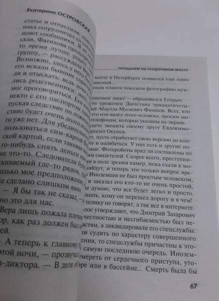 ОписаниеУбийство известного политика Дмитрия Захаровича Иноземцева потрясло город и поставило множество вопросов. Кто опубликовал новость о его смерти в социальной сети буквально в момент преступления? Почему свидетелей по делу отпускают и позволяют им скрыться? Что за девушка провела с Иноземцевым вечер перед убийством? Владелица детективного агентства Вера Бережная, которой Иноземцев назначил встречу незадолго до гибели, оказалась вовлечена в большую политическую игру. Она должна выяснить, кому была выгодна смерть Иноземцева и какое отношение это имеет к ней самой… Татьяна Устинова рекомендует: «Островская играет жизнями, тасует героев, заставляет их совершать неожиданные и странные поступки, а читателя с замиранием сердца следить за ними и гадать — сработает, не сработает, выберутся, не выберутся!.. Сюжет то и дело поворачивает в какую-то другую сторону и на полной скорости несется дальше. Это почти невозможно, но ей удается удержаться на этих виражах!.. И очень хочется, чтобы у героев все получилось!.. И финал! Он всегда феерический, во всех отношениях».СвернутьУбийство известного политика Дмитрия Захаровича Иноземцева потрясло город и поставило множество вопросов. Кто опубликовал новость о его смерти в социальной сети буквально в момент преступления? Почему свидетелей по делу отпускают и позволяют им скрыться? Что за девушка провела с Иноземцевым вечер перед убийством? Владелица детективного агентства Вера Бережная, которой Иноземцев назначил встречу незадолго до гибели, оказалась вовлечена в большую политическую игру. Она должна выяснить, кому была выгодна смерть Иноземцева и какое отношение это имеет к ней самой… Татьяна Устинова рекомендует: «Островская играет жизнями, тасует героев, заставляет их совершать неожиданные и странные поступки, а читателя с замиранием сердца следить за ними и гадать — сработает, не сработает, выберутся, не выберутся!.. Сюжет то и дело поворачивает в какую-то другую сторону и на полной скорости несется дальше. Это почти невозможно, но ей удается удержаться на этих виражах!.. И очень хочется, чтобы у героев все получилось!.. И финал! Он всегда феерический, во всех отношениях».СвернутьСвернуть