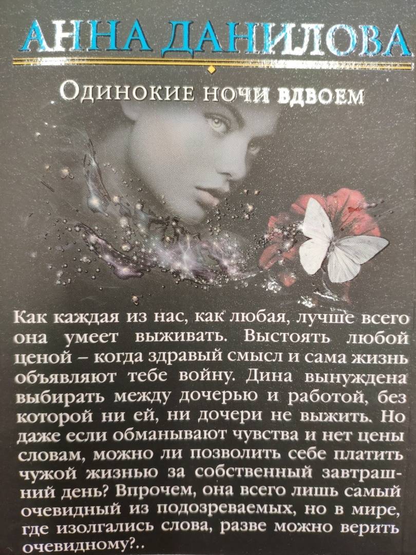 ---Анна Данилова: Одинокие ночи вдвоемРусская классическая и современная литератураДетектив. Остросюжетная литератураЗарубежная художественная литератураРусская художественная литератураФэнтезиДраматургияПоэзияПриключенияФантастикаЭпос и фольклорКлассическая прозаАфоризмыИсторическая прозаДетективыБасниСентиментальная прозаОтечественный боевикСовременная прозаМолодежная литератураЗарубежная классическая и современная литература
