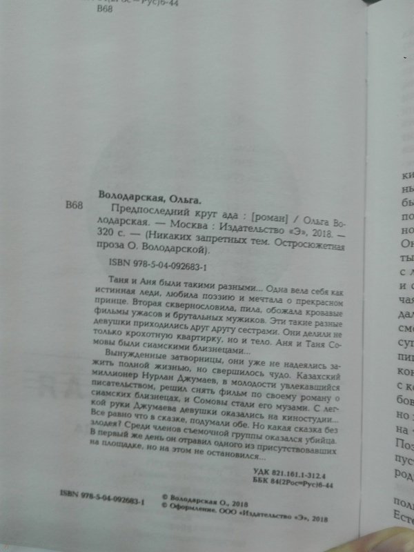 ---Ольга Володарская: Предпоследний круг адаРусская классическая и современная литератураЗарубежная художественная литератураРусская художественная литератураФэнтезиДраматургияПоэзияПриключенияФантастикаЭпос и фольклорКлассическая прозаАфоризмыИсторическая прозаДетективыБасниСентиментальная прозаОтечественный боевикСовременная прозаМолодежная литератураЗарубежная классическая и современная литература