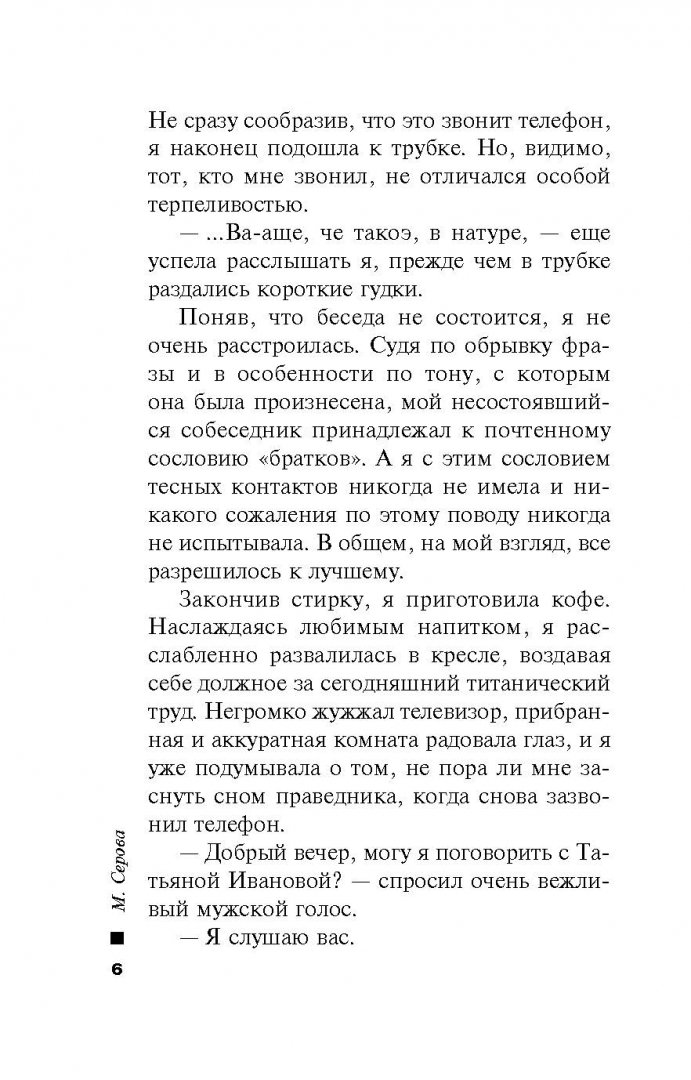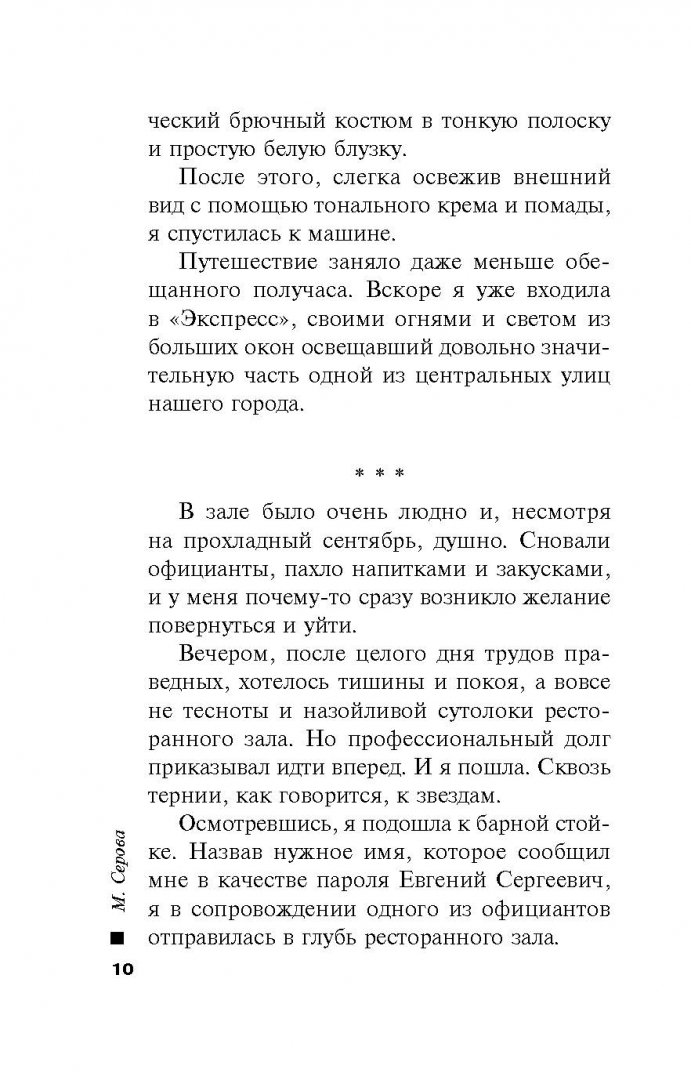 ОписаниеНе всегда детективное расследование дела - процесс добровольный, и не всякий итог следствия можно сообщить клиенту. В этом частный детектив Татьяна Иванова убедилась на собственном опыте, взявшись за выяснение причин гибели ничем на первый взгляд не примечательной работницы детского театра, по совместительству подруги крупного криминального авторитета. Оксана Ширяева умерла на сцене того самого театра, где работала, полиция признала ее смерть несчастным случаем. Но факты, которые смогла выяснить Татьяна Иванова, говорят об обратном…Не всегда детективное расследование дела - процесс добровольный, и не всякий итог следствия можно сообщить клиенту. В этом частный детектив Татьяна Иванова убедилась на собственном опыте, взявшись за выяснение причин гибели ничем на первый взгляд не примечательной работницы детского театра, по совместительству подруги крупного криминального авторитета. Оксана Ширяева умерла на сцене того самого театра, где работала, полиция признала ее смерть несчастным случаем. Но факты, которые смогла выяснить Татьяна Иванова, говорят об обратном…