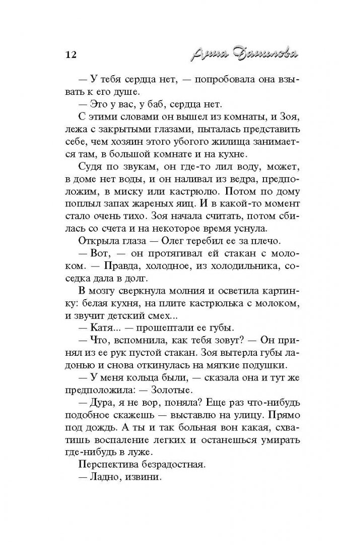 ОписаниеПогожий день, типичная московская пробка, белый кабриолет, за рулем шикарная блондинка Зоя. Она лишь на секунду расслабилась под звуки любимой арии Моцарта…Зоя открыла глаза и ужаснулась: видавшие виды развалюха-"Жигули", сзади - белый кот с зелеными глазами, за рулем - неизвестная личность жуткого вида со всеми следами алкогольного отравления, при этом у девушки - дикая головная боль и полное отсутствие понятия о том, кто ты, откуда и что здесь делаешь… Недолгое пребывание в запущенном деревенском доме поставило девушку перед очень сложным выбором: играть по правилам тех, кто мнит себя кукловодами, или написать собственный сценарий...Погожий день, типичная московская пробка, белый кабриолет, за рулем шикарная блондинка Зоя. Она лишь на секунду расслабилась под звуки любимой арии Моцарта…Зоя открыла глаза и ужаснулась: видавшие виды развалюха-"Жигули", сзади - белый кот с зелеными глазами, за рулем - неизвестная личность жуткого вида со всеми следами алкогольного отравления, при этом у девушки - дикая головная боль и полное отсутствие понятия о том, кто ты, откуда и что здесь делаешь… Недолгое пребывание в запущенном деревенском доме поставило девушку перед очень сложным выбором: играть по правилам тех, кто мнит себя кукловодами, или написать собственный сценарий...