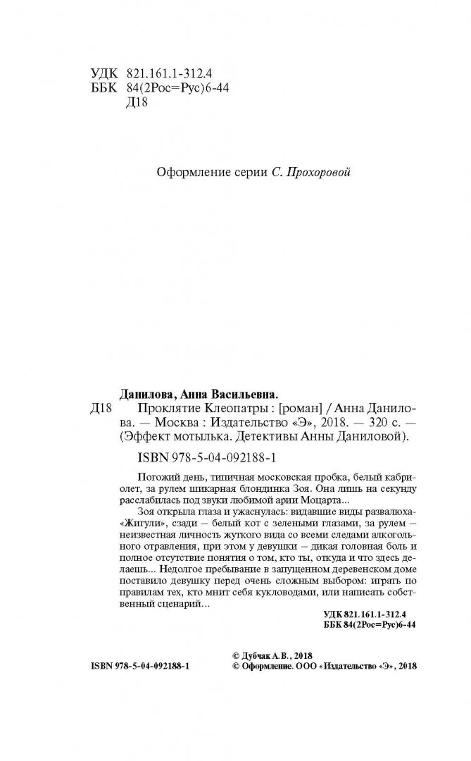 ---Анна Данилова: Проклятие КлеопатрыРусская классическая и современная литератураДетектив. Остросюжетная литератураЗарубежная художественная литератураРусская художественная литератураФэнтезиДраматургияПоэзияПриключенияФантастикаЭпос и фольклорКлассическая прозаАфоризмыИсторическая прозаДетективыБасниСентиментальная прозаОтечественный боевикСовременная прозаМолодежная литератураЗарубежная классическая и современная литература