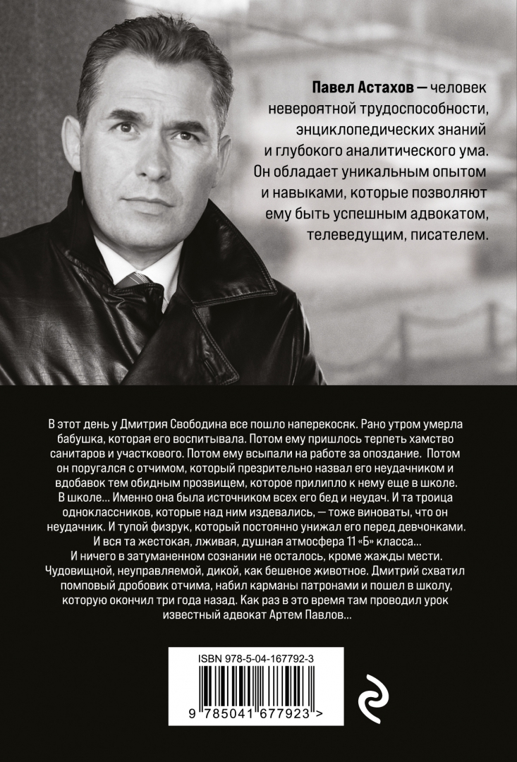 ОписаниеТолько за последние четыре года в России произошло 7 случаев расстрела учащихся в образовательных учреждениях. Кто виновен в том, что молодые люди расстреливают своих однокашников? Может, государство с его беспомощным "управлением" культурой, "заботой" о морали и нравственных ценностях? Или кинематограф, который "крутит" по всем кинотеатрам страны бездуховные и пошлые поделки, мерзкие ужастики и пошлость? Что они несут молодым людям? Агрессию, упадничество, безысходность…Этой - одной из самых тяжелых проблем нашей действительности - и посвящен новый роман Павла Астахова.В этот день у Дмитрия Свободина все пошло наперекосяк. Рано утром умерла бабушка, которая его воспитывала. Потом ему пришлось терпеть хамство санитаров и участкового. Потом ему всыпали на работе за опоздание. Потом он поругался с отчимом, который презрительно назвал его неудачником и, вдобавок, тем обидным прозвищем, которое прилипло к нему еще в школе.В школе… Именно она была источником всех его бед и неудач. И та троица одноклассников, которые нам ним издевались, - тоже виноваты, что он неудачник. И тупой физрук, который постоянно унижал его перед девчонками. И вся та жестокая, лживая, душная атмосфера 11-Б класса…И ничего в затуманенном сознании не осталось, кроме жажды мести. Чудовищной, неуправляемой, дикой, как бешеное животное. Дмитрий схватил помповый дробовик отчима, набил карманы патронами и пошел в школу, которую окончил три года назад. Как раз в это время там проводил урок известный адвокат Артем Павлов…СвернутьТолько за последние четыре года в России произошло 7 случаев расстрела учащихся в образовательных учреждениях. Кто виновен в том, что молодые люди расстреливают своих однокашников? Может, государство с его беспомощным "управлением" культурой, "заботой" о морали и нравственных ценностях? Или кинематограф, который "крутит" по всем кинотеатрам страны бездуховные и пошлые поделки, мерзкие ужастики и пошлость? Что они несут молодым людям? Агрессию, упадничество, безысходность…Этой - одной из самых тяжелых проблем нашей действительности - и посвящен новый роман Павла Астахова.В этот день у Дмитрия Свободина все пошло наперекосяк. Рано утром умерла бабушка, которая его воспитывала. Потом ему пришлось терпеть хамство санитаров и участкового. Потом ему всыпали на работе за опоздание. Потом он поругался с отчимом, который презрительно назвал его неудачником и, вдобавок, тем обидным прозвищем, которое прилипло к нему еще в школе.В школе… Именно она была источником всех его бед и неудач. И та троица одноклассников, которые нам ним издевались, - тоже виноваты, что он неудачник. И тупой физрук, который постоянно унижал его перед девчонками. И вся та жестокая, лживая, душная атмосфера 11-Б класса…И ничего в затуманенном сознании не осталось, кроме жажды мести. Чудовищной, неуправляемой, дикой, как бешеное животное. Дмитрий схватил помповый дробовик отчима, набил карманы патронами и пошел в школу, которую окончил три года назад. Как раз в это время там проводил урок известный адвокат Артем Павлов…СвернутьСвернуть