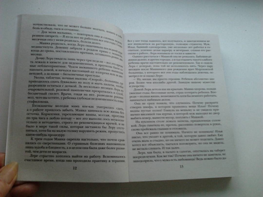 ОписаниеОставшись после измены мужа одна с маленькой дочкой, Лера устраивается в больницу. У нее складываются теплые отношения с одним из пациентов - молодым художником Андреем. Она пытается побороть зарождающееся чувство, однако ее как магнитом тянет к нему. Однажды ночью Андрею внезапно стало плохо. Судя по записям в карте, причина ухудшения - неверно назначенная Лерой дозировка лекарства. Налицо грубая профессиональная ошибка, ей грозит служебное расследование и отстранение от работы. Неужели она своими руками едва не убила любимого? Или все намного сложнее и страшнее? В своих романах Татьяна Бочарова синтезирует разные жанры: это и детектив, и мелодрама, и обязательно лирическая история о человеческих чувствах и переживаниях. Ее герои - простые люди, наши с вами современники, которые волею судьбы оказались в сложной ситуации. Им предстоит сделать непростой выбор, разобраться в дебрях козней и обмана, не сломаться, выстоять, помочь не только себе, но и тем, кому необходима их помощь.СвернутьОставшись после измены мужа одна с маленькой дочкой, Лера устраивается в больницу. У нее складываются теплые отношения с одним из пациентов - молодым художником Андреем. Она пытается побороть зарождающееся чувство, однако ее как магнитом тянет к нему. Однажды ночью Андрею внезапно стало плохо. Судя по записям в карте, причина ухудшения - неверно назначенная Лерой дозировка лекарства. Налицо грубая профессиональная ошибка, ей грозит служебное расследование и отстранение от работы. Неужели она своими руками едва не убила любимого? Или все намного сложнее и страшнее? В своих романах Татьяна Бочарова синтезирует разные жанры: это и детектив, и мелодрама, и обязательно лирическая история о человеческих чувствах и переживаниях. Ее герои - простые люди, наши с вами современники, которые волею судьбы оказались в сложной ситуации. Им предстоит сделать непростой выбор, разобраться в дебрях козней и обмана, не сломаться, выстоять, помочь не только себе, но и тем, кому необходима их помощь.СвернутьСвернуть