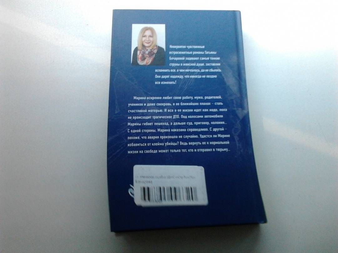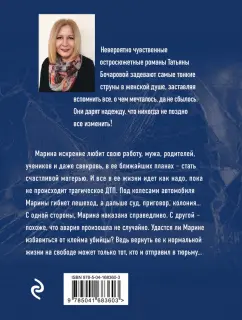 ОписаниеТатьяна Бочарова познакомилась с жанром детектива в юные годы. Сначала это были "Записки Шерлока Холмса" Конан Дойля, затем Агата Кристи и Жорж Сименон. Татьяна проглатывала эти книги за один день, пыталась предвидеть развязку ещё до того, как дочитает до конца, рассказывала содержания друзьям. Позже Татьяна получила профессию музыканта, но детское увлечение детективами не прошло даром, и она сама начала писать увлекательные остросюжетные истории. В своих книгах Татьяна Бочарова старается сделать так, чтобы зло было непременно наказано. Не всегда в роли карателей выступают правоохранительные органы, иногда сама жизнь наказывает тех, кто плетёт интриги, издевается над слабыми, преступает черту.Марина искренне любит свою работу, мужа, родителей, учеников и даже свекровь, в ее ближайших планах - стать счастливой матерью. И все в ее жизни идет как надо, пока не происходит трагическое ДТП. Под колесами автомобиля Марины гибнет пешеход, в дальше суд, приговор, колония... С одной стороны, Марина наказана справедливо. С другой - похоже, что авария произошла не случайно. Удастся ли Марине избавиться от клейма убийцы? Ведь вернуть ее к нормальной жизни на свободе может только тот, кто и отправил в тюрьму-СвернутьТатьяна Бочарова познакомилась с жанром детектива в юные годы. Сначала это были "Записки Шерлока Холмса" Конан Дойля, затем Агата Кристи и Жорж Сименон. Татьяна проглатывала эти книги за один день, пыталась предвидеть развязку ещё до того, как дочитает до конца, рассказывала содержания друзьям. Позже Татьяна получила профессию музыканта, но детское увлечение детективами не прошло даром, и она сама начала писать увлекательные остросюжетные истории. В своих книгах Татьяна Бочарова старается сделать так, чтобы зло было непременно наказано. Не всегда в роли карателей выступают правоохранительные органы, иногда сама жизнь наказывает тех, кто плетёт интриги, издевается над слабыми, преступает черту.Марина искренне любит свою работу, мужа, родителей, учеников и даже свекровь, в ее ближайших планах - стать счастливой матерью. И все в ее жизни идет как надо, пока не происходит трагическое ДТП. Под колесами автомобиля Марины гибнет пешеход, в дальше суд, приговор, колония... С одной стороны, Марина наказана справедливо. С другой - похоже, что авария произошла не случайно. Удастся ли Марине избавиться от клейма убийцы? Ведь вернуть ее к нормальной жизни на свободе может только тот, кто и отправил в тюрьму-СвернутьСвернуть