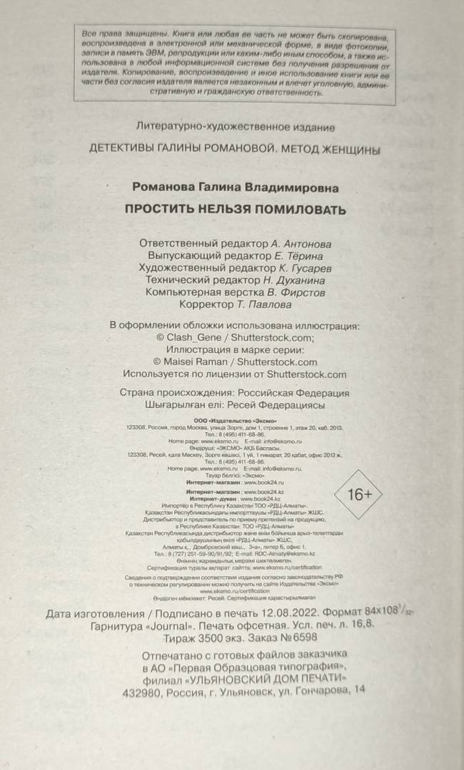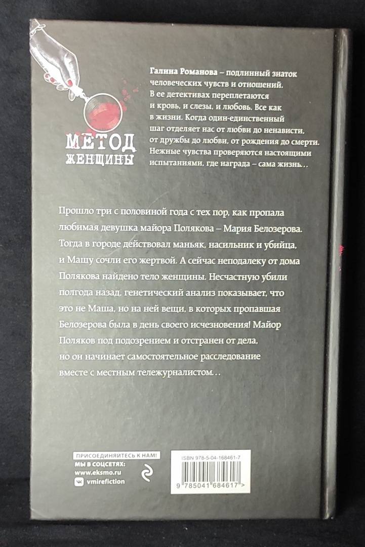 Объем, стр. 320 ISBN 978-5-04-168461-7 Автор Романова Галина Владимировна Серия Детективы Г.Романовой. Метод Женщины Язык Русский Минимальный возраст 16+ Год издания книги 2022 Тип обложки Твердый переплет Иллюстрации Без иллюстраций Вес, г 260г Размеры 205х130х22 мм - Отзывы