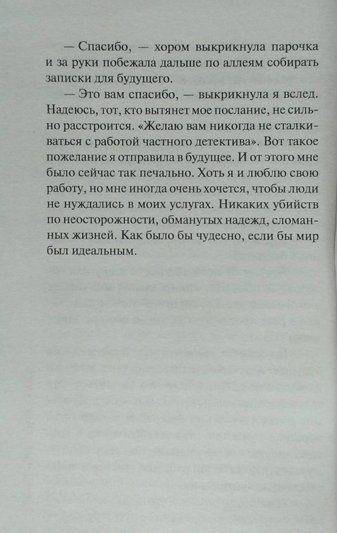 ОписаниеМарина Серова — феномен современного отечественного детективного жанра. Выпускница юрфака МГУ, работала в Генеральной прокуратуре. С 1987 года по настоящее время — сотрудник одной из специальных служб. Участвовала в боевых операциях и оперативных мероприятиях. Автор ряда остросюжетных повестей, суммарный тираж которых превышает двадцать миллионов экземпляров. Частному детективу Татьяне Ивановой досталась задача проследить за отличным врачом, благотворителем, заботливом мужем, в общем, идеальном гражданином, чтобы поймать его на измене. С задачей сыщица справилась быстро, но история приобрела неожиданный поворот! Таня оказалась в центре громкого скандала, ее репутация стала запятнана, а главное, объект слежки оказался убит! Кому могла быть выгодна смерть кумира, теперь и предстоит выяснить Тане…Марина Серова — феномен современного отечественного детективного жанра. Выпускница юрфака МГУ, работала в Генеральной прокуратуре. С 1987 года по настоящее время — сотрудник одной из специальных служб. Участвовала в боевых операциях и оперативных мероприятиях. Автор ряда остросюжетных повестей, суммарный тираж которых превышает двадцать миллионов экземпляров. Частному детективу Татьяне Ивановой досталась задача проследить за отличным врачом, благотворителем, заботливом мужем, в общем, идеальном гражданином, чтобы поймать его на измене. С задачей сыщица справилась быстро, но история приобрела неожиданный поворот! Таня оказалась в центре громкого скандала, ее репутация стала запятнана, а главное, объект слежки оказался убит! Кому могла быть выгодна смерть кумира, теперь и предстоит выяснить Тане…