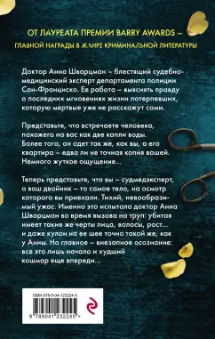ОписаниеБестселлер #1 Amazon и USA Today.Один из лучших триллеров 2016 года.От лауреата премии Barry Awards - главной криминальной литературной награды.Доктор Анна Шварцман - блестящий судебно-медицинский эксперт департамента полиции Сан-Франциско. Ее работа - выяснять правду о последних мгновениях жизни потерпевших, которую мертвые уже не расскажут сами.Представьте, что встречаете человека, похожего на вас как две капли воды. Более того: он одет так же, как вы, а его квартира - едва ли не точная копия вашей. Немного жуткое ощущение…Теперь представьте, что вы - судмедэксперт, а ваш двойник - то самое тело, на осмотр которого вы приехали. Тихий, невообразимый ужас. Именно это испытала доктор Анна Шварцман во время вызова на труп: убитая имеет такие же черты лица, волосы, рост… и даже кулон на ее шее точно такой же, как у Анны. Но главное - внезапное осознание: все это лишь начало, и худший кошмар еще впереди…Этот пульсирующий триллер о противостоянии сильной героини и жестокого серийного убийцы поднимает тему домашнего насилия и выхода из него на новый уровень. Книга не оставит равнодушным ни одного из читателей. Особенно поклонников сериалов "След" и "Кости".СвернутьБестселлер #1 Amazon и USA Today.Один из лучших триллеров 2016 года.От лауреата премии Barry Awards - главной криминальной литературной награды.Доктор Анна Шварцман - блестящий судебно-медицинский эксперт департамента полиции Сан-Франциско. Ее работа - выяснять правду о последних мгновениях жизни потерпевших, которую мертвые уже не расскажут сами.Представьте, что встречаете человека, похожего на вас как две капли воды. Более того: он одет так же, как вы, а его квартира - едва ли не точная копия вашей. Немного жуткое ощущение…Теперь представьте, что вы - судмедэксперт, а ваш двойник - то самое тело, на осмотр которого вы приехали. Тихий, невообразимый ужас. Именно это испытала доктор Анна Шварцман во время вызова на труп: убитая имеет такие же черты лица, волосы, рост… и даже кулон на ее шее точно такой же, как у Анны. Но главное - внезапное осознание: все это лишь начало, и худший кошмар еще впереди…Этот пульсирующий триллер о противостоянии сильной героини и жестокого серийного убийцы поднимает тему домашнего насилия и выхода из него на новый уровень. Книга не оставит равнодушным ни одного из читателей. Особенно поклонников сериалов "След" и "Кости".СвернутьСвернуть