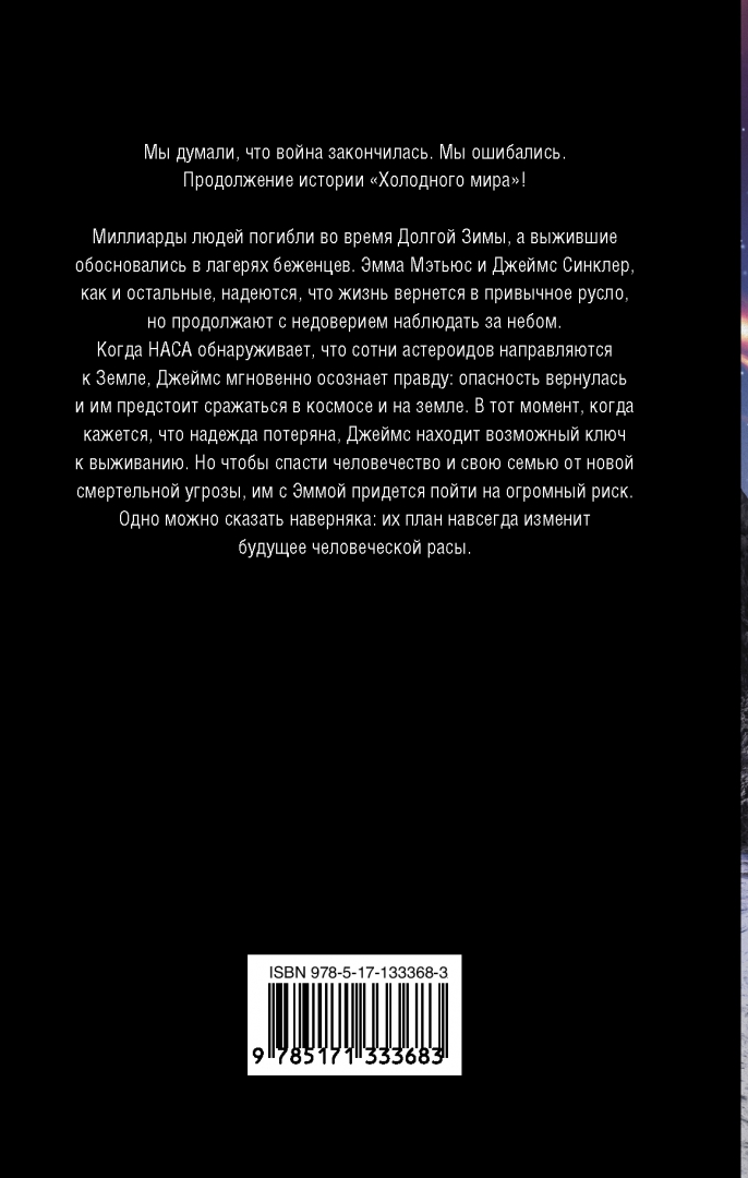 Миллиарды людей погибли во время Долгой Зимы, а выжившие обосновались в лагерях беженцев. Эмма Мэтьюс и Джеймс Синклер, как и остальные, надеются, что жизнь вернется в привычное русло, но продолжают с недоверием наблюдать за небом.Когда НАСА обнаруживает, что сотни астероидов направляются к Земле, Джеймс мгновенно осознает правду: опасность вернулась и им предстоит сражаться в космосе и на земле. В тот момент, когда кажется, что надежда потеряна, Джеймс находит возможный ключ к выживанию. Но чтобы спасти человечество и свою семью от новой смертельной угрозы, им с Эммой придется пойти на огромный риск. Одно можно сказать наверняка: их план навсегда изменит будущее человеческой расы.Впервые на русском языке! Продолжение романа «Холодный мир».