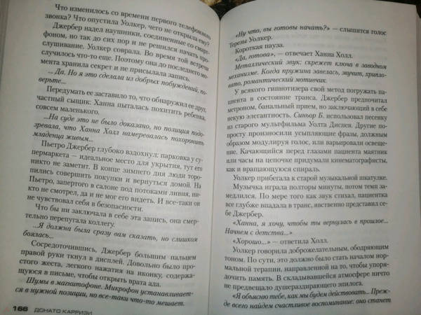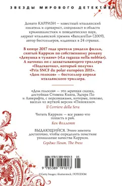 Описание«Дом голосов» - новый бестселлер Донато Карризи, короля итальянского триллера. Пьетро Джербер - психолог, но не такой как другие. Его специализация - гипноз, и все его пациенты это дети, с которыми что-то случилось: они перенесли травму, стали свидетелями драматических событий или в их хрупкой памяти хранится важная информация, которая может помочь полиция или органам опеки в расследовании. Но вот с другого конца света, из Австралии, ему звонит коллега и просит принять пациента. Пьетро недоумевает, зачем обращаться именно к нему, ведь Ханна Холл взрослая. Оказывается, молодой женщине не дает покоя воспоминание о некоем убийстве, будто бы совершенном ею в детстве. И чтобы понять, правда это или иллюзия, ей необходим лучший психолог Флоренции - Пьетро Джербер. Впервые на русском!«Дом голосов» - новый бестселлер Донато Карризи, короля итальянского триллера. Пьетро Джербер - психолог, но не такой как другие. Его специализация - гипноз, и все его пациенты это дети, с которыми что-то случилось: они перенесли травму, стали свидетелями драматических событий или в их хрупкой памяти хранится важная информация, которая может помочь полиция или органам опеки в расследовании. Но вот с другого конца света, из Австралии, ему звонит коллега и просит принять пациента. Пьетро недоумевает, зачем обращаться именно к нему, ведь Ханна Холл взрослая. Оказывается, молодой женщине не дает покоя воспоминание о некоем убийстве, будто бы совершенном ею в детстве. И чтобы понять, правда это или иллюзия, ей необходим лучший психолог Флоренции - Пьетро Джербер. Впервые на русском!