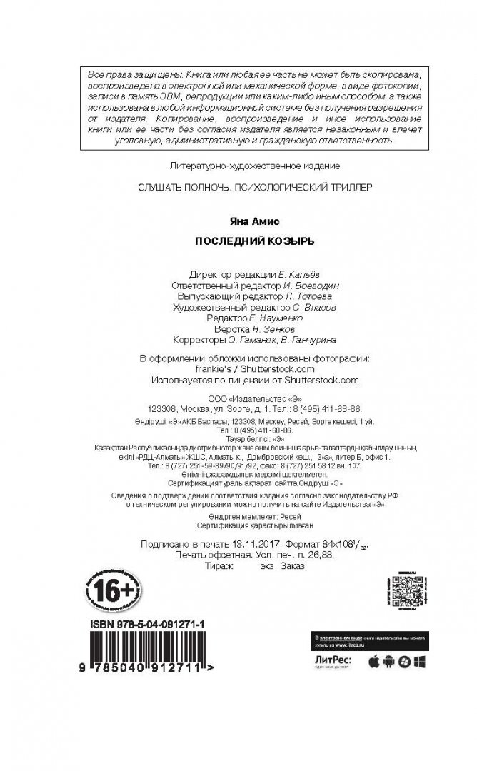 Объем, стр. 512 ISBN 978-5-04-091271-1 Автор Амис Яна Серия Слушать полночь. Психологический триллер Минимальный возраст 16+ Год издания книги 2018 Тип обложки Твердый переплет Иллюстрации Без иллюстраций Вес, г 444г Размеры 205х135х28 мм - Отзывы