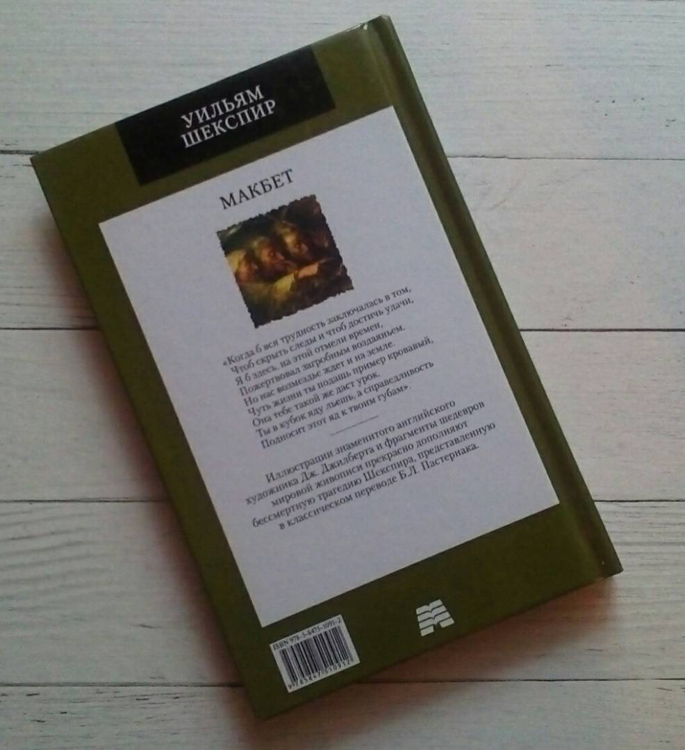 Описание"Макбет" - одна из самых мрачных трагедий великого английского драматурга Уильяма Шекспира. Пьеса о необузданной жажде власти тщеславного короля Макбета, преступлении и наказании, предательстве и коварстве. Разбушевавшиеся пороки несут саморазрушение и гибель, но при этом побуждают человека к познанию смысла и вечных истин жизни.Иллюстрации знаменитого английского художника Дж. Джилберта и фрагменты шедевров мировой живописи прекрасно дополняют бессмертную трагедию Шекспира, представленную в классическом переводе Б.Л. Пастернака."Макбет" - одна из самых мрачных трагедий великого английского драматурга Уильяма Шекспира. Пьеса о необузданной жажде власти тщеславного короля Макбета, преступлении и наказании, предательстве и коварстве. Разбушевавшиеся пороки несут саморазрушение и гибель, но при этом побуждают человека к познанию смысла и вечных истин жизни.Иллюстрации знаменитого английского художника Дж. Джилберта и фрагменты шедевров мировой живописи прекрасно дополняют бессмертную трагедию Шекспира, представленную в классическом переводе Б.Л. Пастернака.