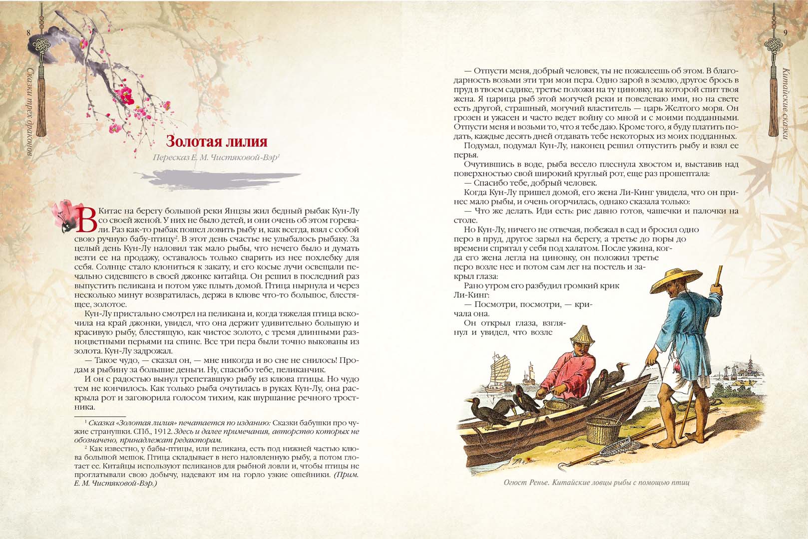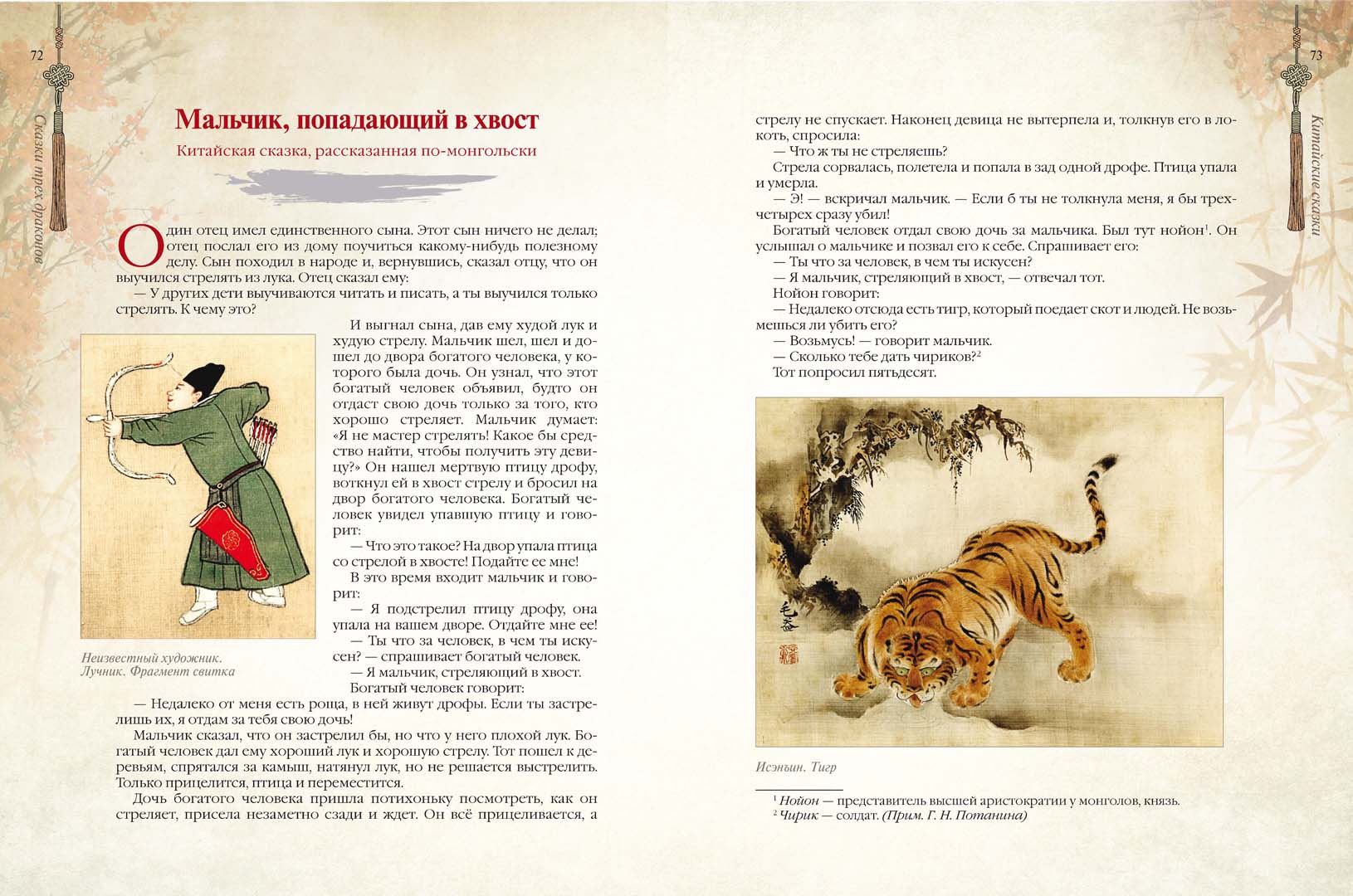 ОписаниеПредставленные в этом сборнике китайские, корейские и японские народные сказки откроют читателю загадочный и удивительный мир древнейших культур Восточной Азии. Словно нарисованные пестрыми красками на тонком шелке предстанут перед ним могущественные владыки подводного царства и заколдованные прекрасные принцессы, огромные страшные демоны и отважные мальчишки величиной с палец, изворотливые хитрецы и мудрые предсказатели, жадные богачи и неунывающие бедняки…Вошедшие в книгу произведения были собраны, переведены и обработаны русскими писателями и учеными более ста лет назад, многие с того времени не переиздавались и теперь возвращаются к читателям, чтобы вновь радовать их своей яркой экзотикой, увлекательными приключениями героев и неустаревающей мудростью Древнего Востока.Составители: Е.А. Павликова, К.С. Жуков.Представленные в этом сборнике китайские, корейские и японские народные сказки откроют читателю загадочный и удивительный мир древнейших культур Восточной Азии. Словно нарисованные пестрыми красками на тонком шелке предстанут перед ним могущественные владыки подводного царства и заколдованные прекрасные принцессы, огромные страшные демоны и отважные мальчишки величиной с палец, изворотливые хитрецы и мудрые предсказатели, жадные богачи и неунывающие бедняки…Вошедшие в книгу произведения были собраны, переведены и обработаны русскими писателями и учеными более ста лет назад, многие с того времени не переиздавались и теперь возвращаются к читателям, чтобы вновь радовать их своей яркой экзотикой, увлекательными приключениями героев и неустаревающей мудростью Древнего Востока.Составители: Е.А. Павликова, К.С. Жуков.
