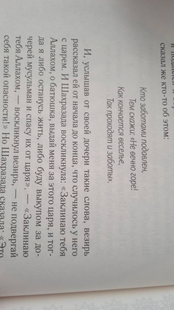 ОписаниеВ историях прекрасной Шахразады переплетаются героические и плутовские, мифологические и любовные сюжеты индийского, персидского, арабского народов. Причудливая фантазия, сложные авантюры, яркие описания удивительных стран и городов, а также обольстительные красавицы, богатейшие правители, джинны и колдуны-все это прихотливо переплетается с реалистическим изображением жизни и быта простых людей, ловких и неунывающих.Блистательные иллюстрации, преисполненные страсти и неги, великолепный язык - живой, образный, сочный - дадут читателям возможность глубоко и надолго погрузиться в необыкновенный, загадочный и чарующий мир средневекового Востока.В историях прекрасной Шахразады переплетаются героические и плутовские, мифологические и любовные сюжеты индийского, персидского, арабского народов. Причудливая фантазия, сложные авантюры, яркие описания удивительных стран и городов, а также обольстительные красавицы, богатейшие правители, джинны и колдуны-все это прихотливо переплетается с реалистическим изображением жизни и быта простых людей, ловких и неунывающих.Блистательные иллюстрации, преисполненные страсти и неги, великолепный язык - живой, образный, сочный - дадут читателям возможность глубоко и надолго погрузиться в необыкновенный, загадочный и чарующий мир средневекового Востока.
