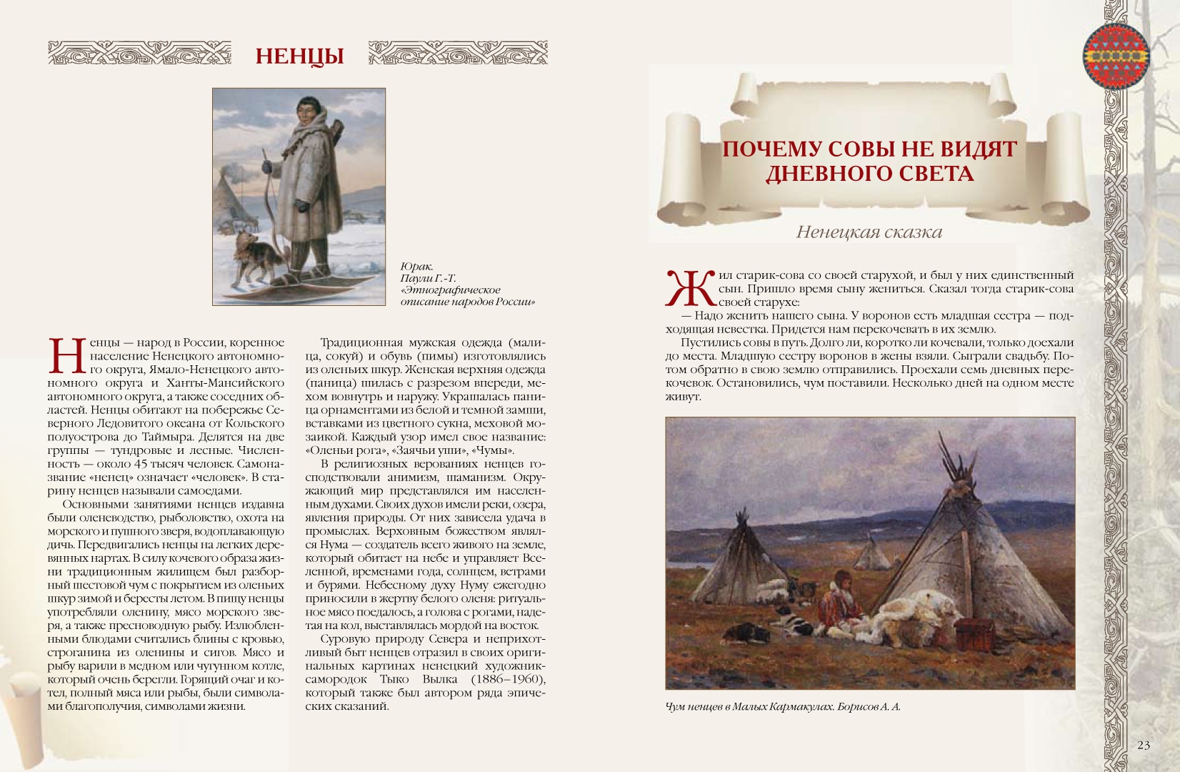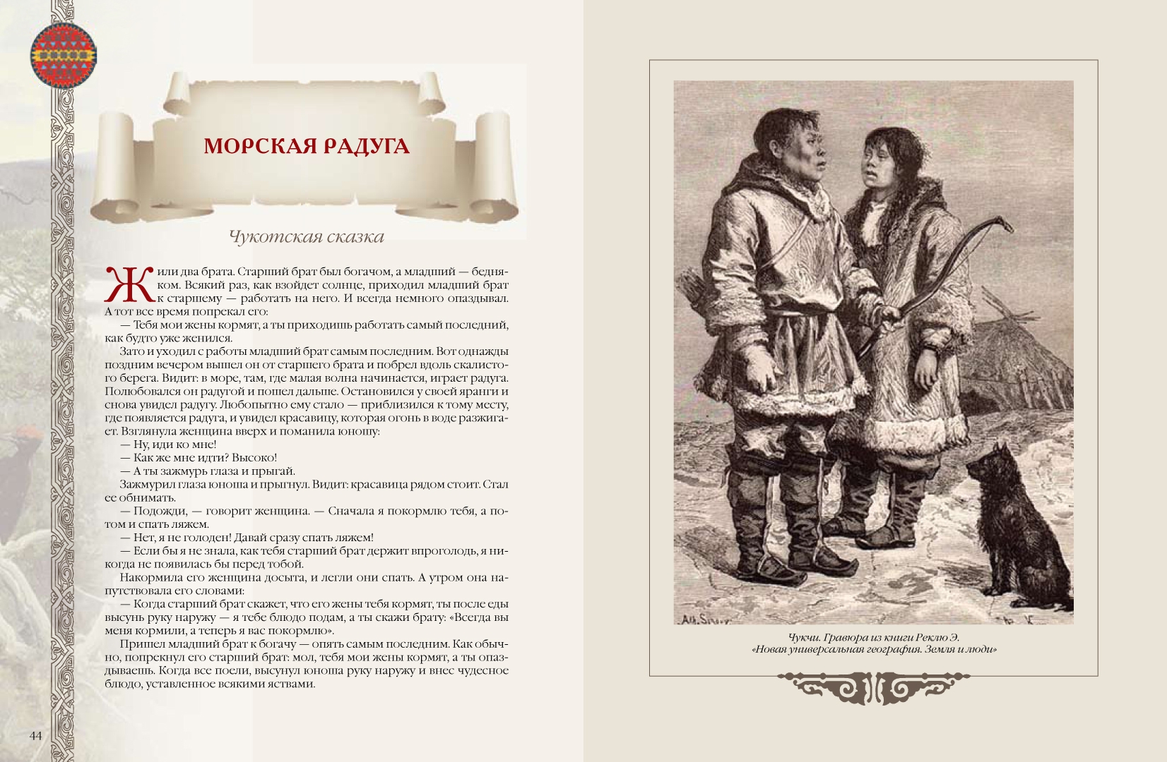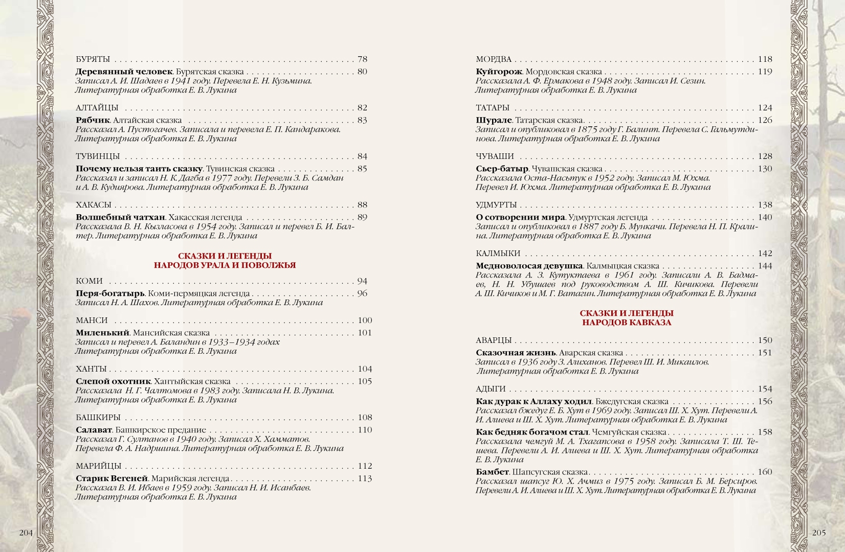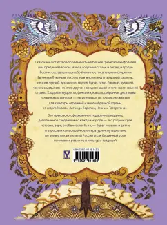 ОписаниеСказочное богатство России ничуть не беднее греческой мифологии или преданий Европы. Новое собрание сказок и легенд народов России, составленное и обработанное писателем и историком Евгением Лукиным, откроет нам мир легенд и преданий карелов, ненцев, чукчей, эскимосов, якутов, бурят, татар, башкир, чувашей, чеченцев, адыгов и многих других народов нашей многонациональной страны. Кладовая мудрости, фантазии, юмора, собранная десятками талантливых народов - таких разных, но одинаково важных для культуры огромной и многообразной страны, от седого Урала и Алтая до Карелии, Чечни и Татарстана…Это прекрасно оформленное подарочное издание, дополненное сведениями о каждом народе - его родном крае, истории, вере, особенностях быта, - будет полезно и детям, и взрослым как волшебное литературное путешествие по всем уголкам великой России и как бесценный урок понимания различных культур и традиций.Книга служит идее толерантного общения, представляя Россию как единую, многообразную страну, где живут десятки талантливых народов и народностей.Составитель: Е.В. Лукин.СвернутьСказочное богатство России ничуть не беднее греческой мифологии или преданий Европы. Новое собрание сказок и легенд народов России, составленное и обработанное писателем и историком Евгением Лукиным, откроет нам мир легенд и преданий карелов, ненцев, чукчей, эскимосов, якутов, бурят, татар, башкир, чувашей, чеченцев, адыгов и многих других народов нашей многонациональной страны. Кладовая мудрости, фантазии, юмора, собранная десятками талантливых народов - таких разных, но одинаково важных для культуры огромной и многообразной страны, от седого Урала и Алтая до Карелии, Чечни и Татарстана…Это прекрасно оформленное подарочное издание, дополненное сведениями о каждом народе - его родном крае, истории, вере, особенностях быта, - будет полезно и детям, и взрослым как волшебное литературное путешествие по всем уголкам великой России и как бесценный урок понимания различных культур и традиций.Книга служит идее толерантного общения, представляя Россию как единую, многообразную страну, где живут десятки талантливых народов и народностей.Составитель: Е.В. Лукин.СвернутьСвернуть
