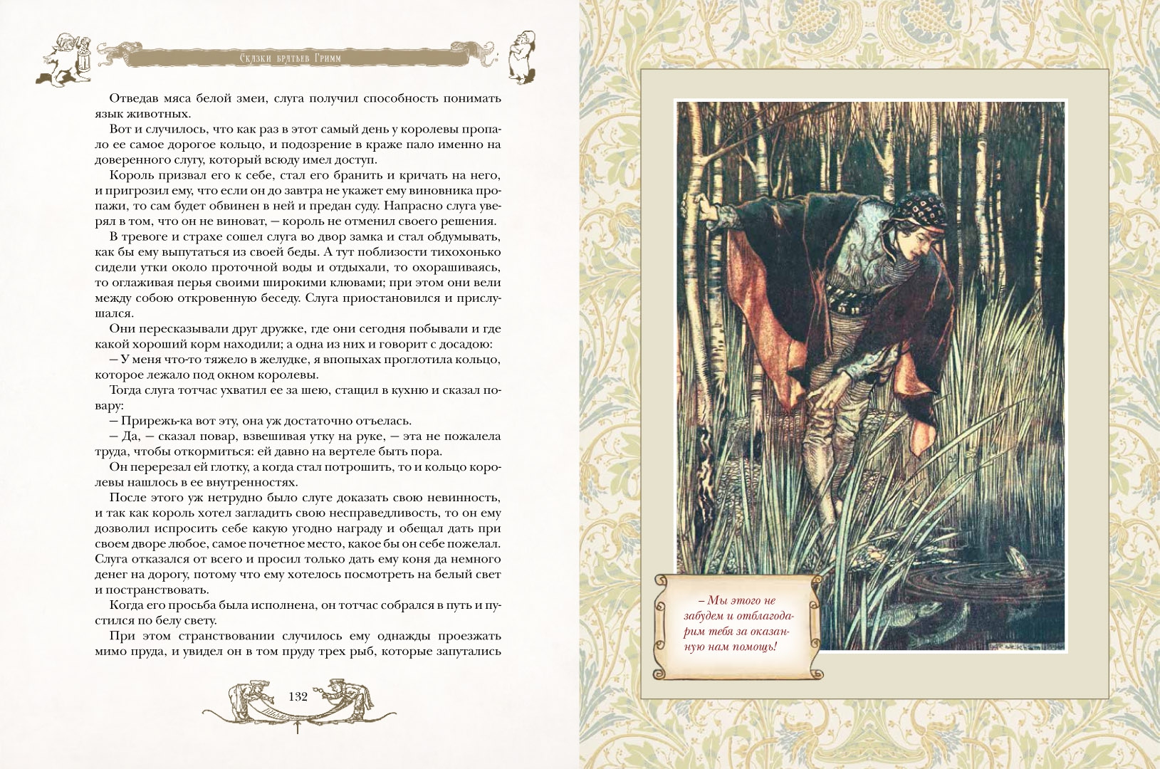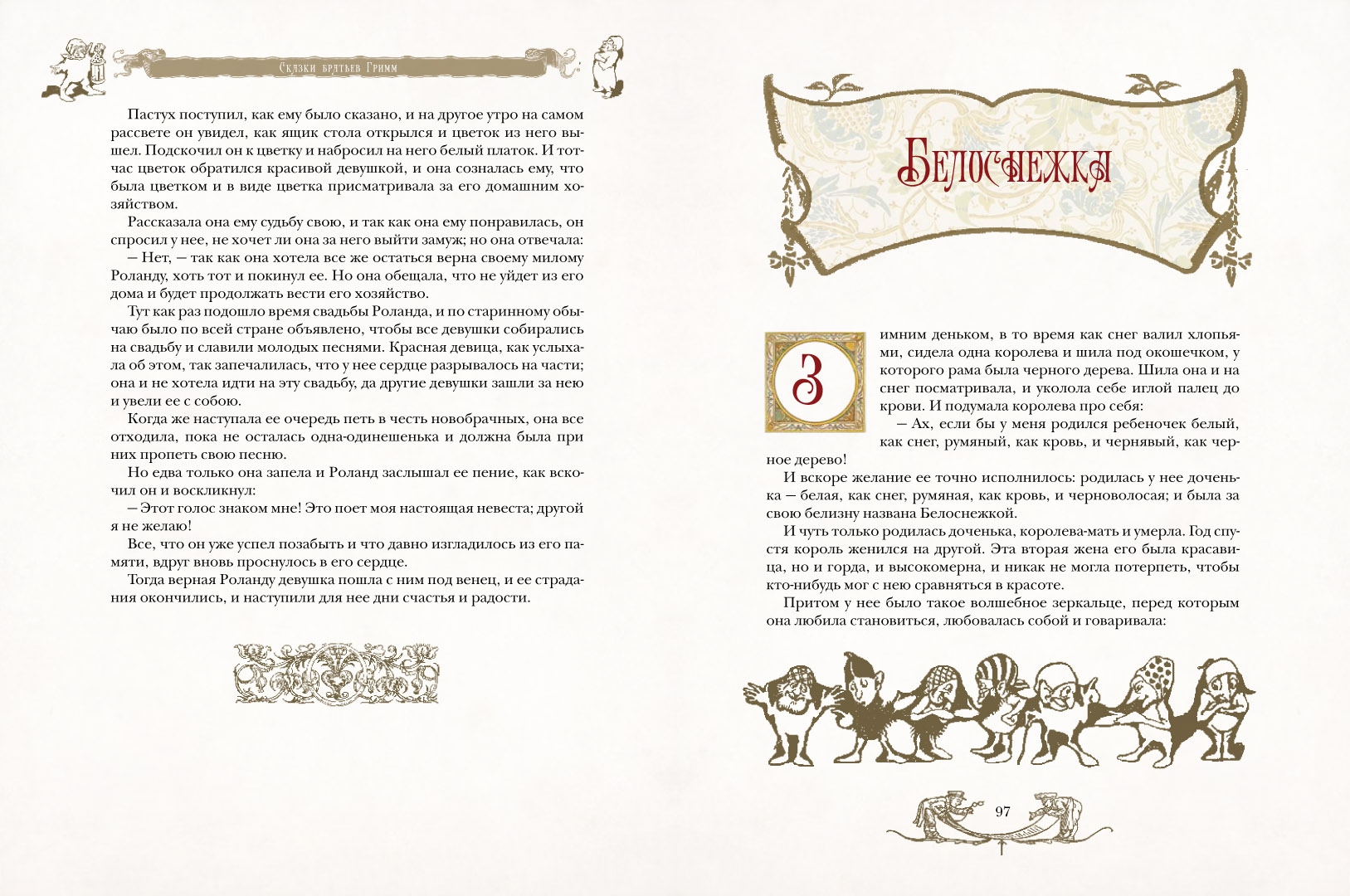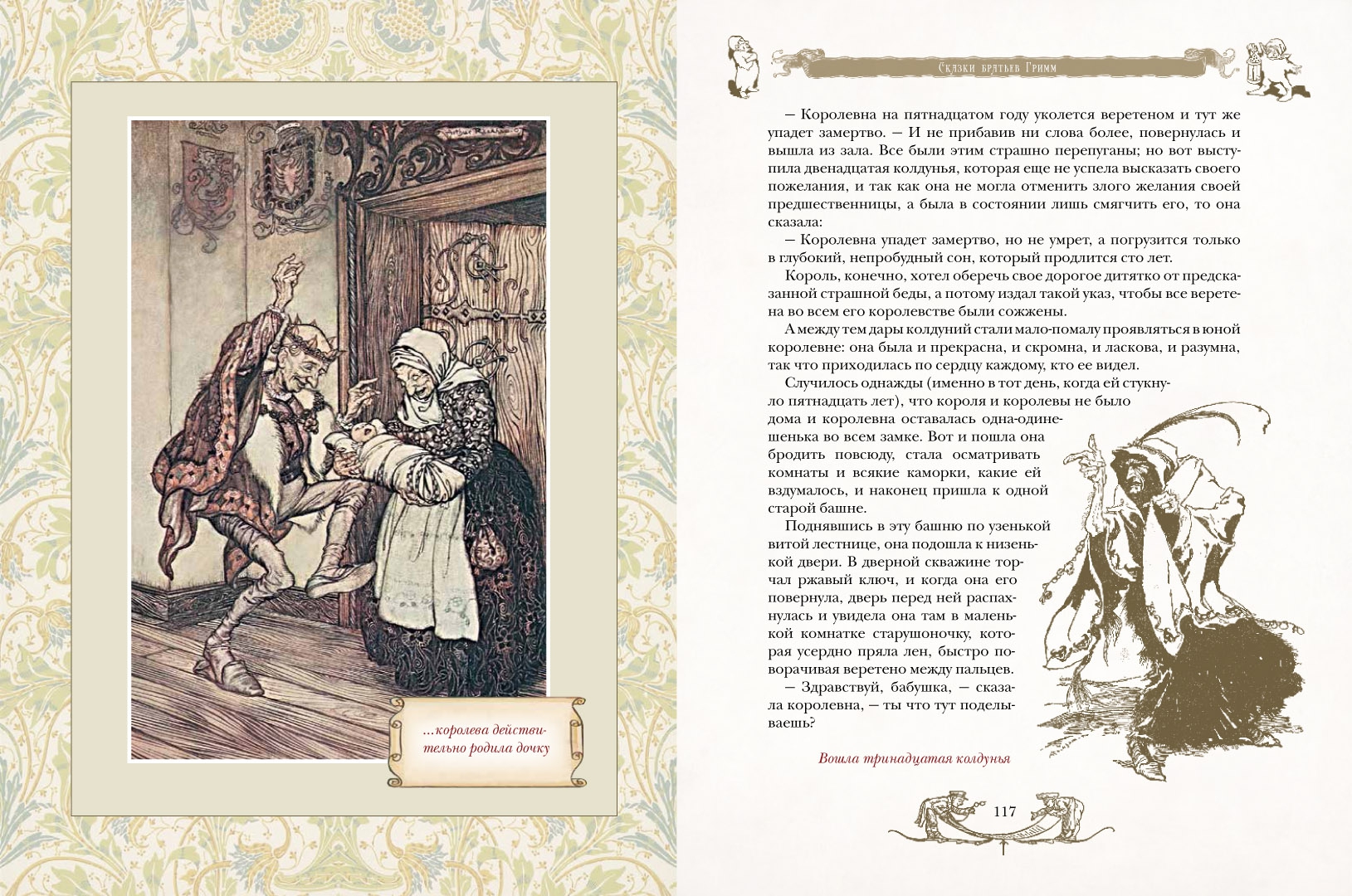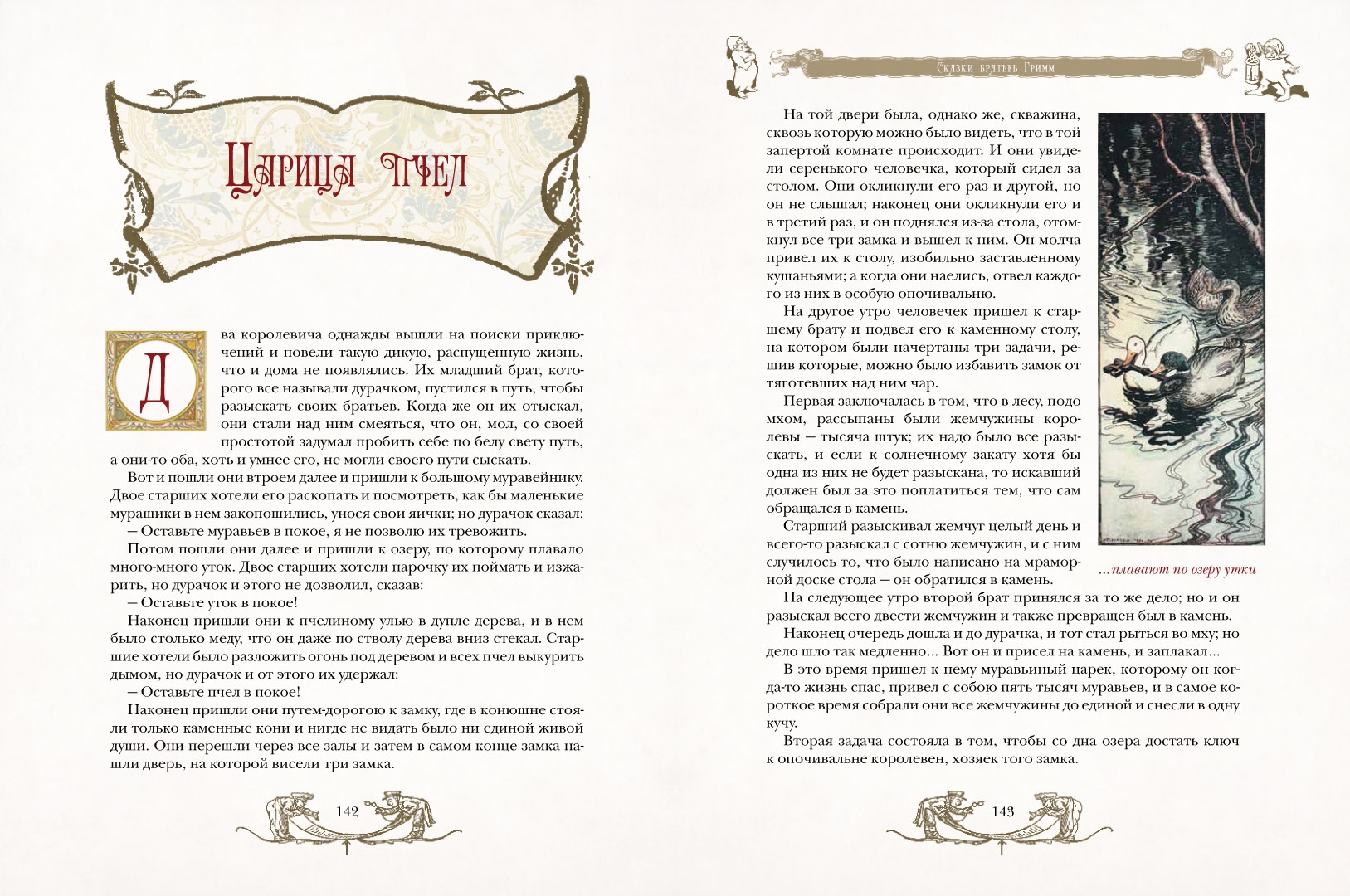 Описание"Храбрый портняжка", "Красная Шапочка", "Мальчик-с-пальчик", "Белоснежка", "Волк и семеро козлят" (как и пушкинская "Сказка о мертвой царевне" или "О рыбаке и рыбке") - все они пришли к нам из сказок братьев Гримм. Наше издание этого легендарного собрания уникально сразу по двум причинам: в него включен первый, и, по мнению многих, лучший русский перевод сказок братьев Гримм, созданный в конце XIX века писателем, историком и литературоведом Николаем Полевым (1839-1902). В дальнейшем сказки Гримм переводились множество раз, но именно издание Полевого познакомило с ними первые два поколения русских читателей.Уникальный перевод дополнен не менее ценными иллюстрациями: рисунками легендарного английского художника Артура Рэкхема (1867-1939), а также заставками и виньетками одного из столпов английского модерна Уолтера Крейна (1845-1915).…Кстати, а помните ли вы историю про поющего и прыгающего львиного жаворонка или сказку о мышке, птичке и жареной колбасе? Самое время вспомнить!Составитель Кузьмин В.В.Свернуть"Храбрый портняжка", "Красная Шапочка", "Мальчик-с-пальчик", "Белоснежка", "Волк и семеро козлят" (как и пушкинская "Сказка о мертвой царевне" или "О рыбаке и рыбке") - все они пришли к нам из сказок братьев Гримм. Наше издание этого легендарного собрания уникально сразу по двум причинам: в него включен первый, и, по мнению многих, лучший русский перевод сказок братьев Гримм, созданный в конце XIX века писателем, историком и литературоведом Николаем Полевым (1839-1902). В дальнейшем сказки Гримм переводились множество раз, но именно издание Полевого познакомило с ними первые два поколения русских читателей.Уникальный перевод дополнен не менее ценными иллюстрациями: рисунками легендарного английского художника Артура Рэкхема (1867-1939), а также заставками и виньетками одного из столпов английского модерна Уолтера Крейна (1845-1915).…Кстати, а помните ли вы историю про поющего и прыгающего львиного жаворонка или сказку о мышке, птичке и жареной колбасе? Самое время вспомнить!Составитель Кузьмин В.В.СвернутьСвернуть