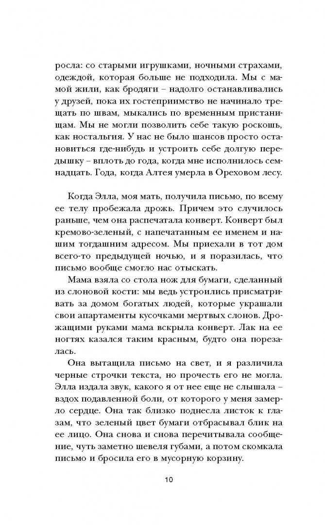ОписаниеСемнадцатилетняя Алиса провела почти всю свою жизнь в разъездах: словно злой рок преследует их с матерью, заставляя раз за разом искать новый дом. Известие о смерти бабушки, Алтеи Прозерпины, ни разу не видевшей внучку, расстраивает девушку, и одновременно дает надежду: имение "Ореховый лес", перешедшее по наследству ее матери Элле, может стать для них не временным убежищем, а настоящим домом.Но надеждам Алисы не суждено сбыться: кто-то похищает Эллу, пока ее дочь находится в школе. В поисках единственного дорогого ей человека Алисе придется заново открыть старые сказки и себя, а еще - пренебречь последними словами матери: "Держись подальше от орехового леса!"Семнадцатилетняя Алиса провела почти всю свою жизнь в разъездах: словно злой рок преследует их с матерью, заставляя раз за разом искать новый дом. Известие о смерти бабушки, Алтеи Прозерпины, ни разу не видевшей внучку, расстраивает девушку, и одновременно дает надежду: имение "Ореховый лес", перешедшее по наследству ее матери Элле, может стать для них не временным убежищем, а настоящим домом.Но надеждам Алисы не суждено сбыться: кто-то похищает Эллу, пока ее дочь находится в школе. В поисках единственного дорогого ей человека Алисе придется заново открыть старые сказки и себя, а еще - пренебречь последними словами матери: "Держись подальше от орехового леса!"