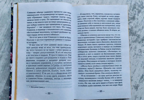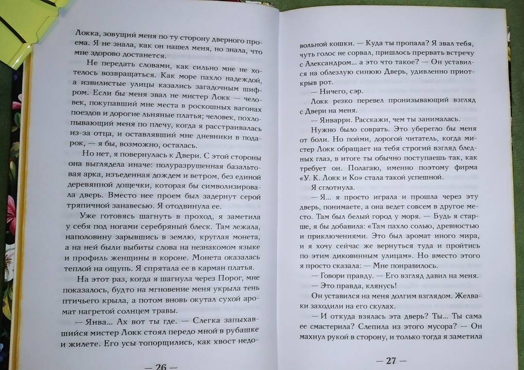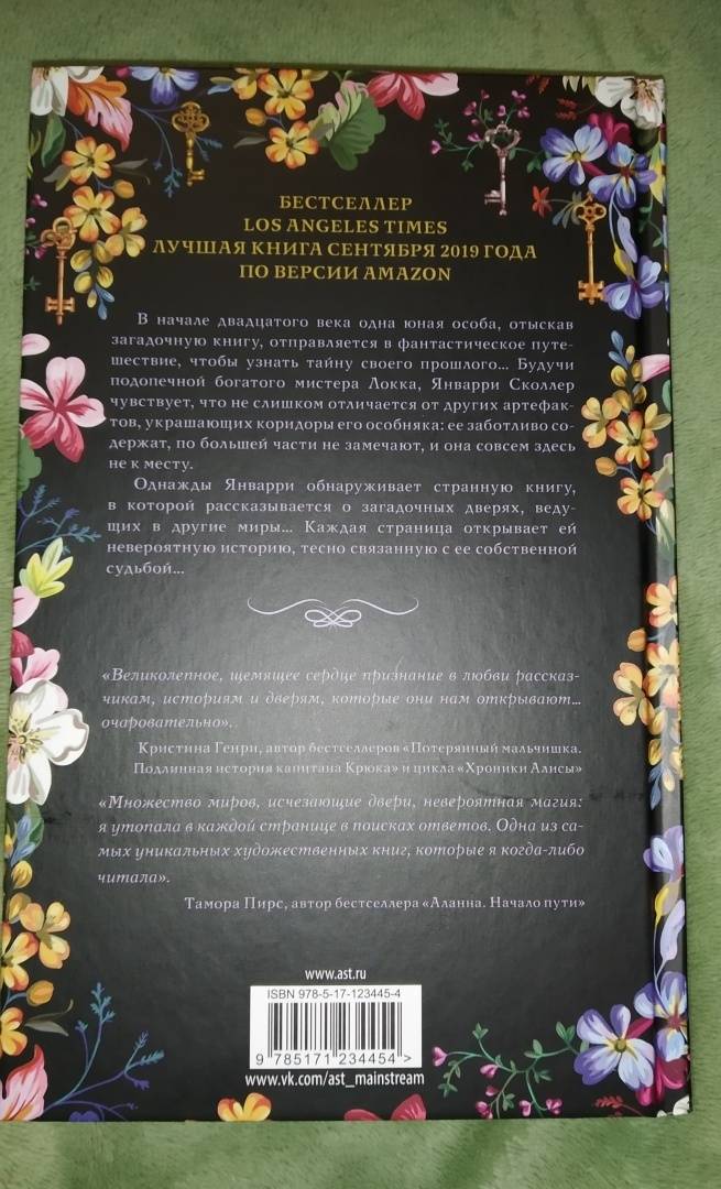 ОписаниеВ начале двадцатого века одна юная особа, отыскав загадочную книгу, отправляется в фантастическое путешествие, чтобы узнать тайну своего прошлого...Будучи подопечной богатого мистера Локка, Январри Сколлер чувствует, что не слишком отличается от других артефактов, украшающих коридоры его особняка: ее заботливо содержат, по большей части не замечают, и она совсем здесь не к месту.Однажды Январри обнаруживает странную книгу, в которой рассказывается о загадочных дверях, ведущих в другие миры... Каждая страница открывает ей невероятную историю, тесно связанную с ее собственной судьбой...В начале двадцатого века одна юная особа, отыскав загадочную книгу, отправляется в фантастическое путешествие, чтобы узнать тайну своего прошлого...Будучи подопечной богатого мистера Локка, Январри Сколлер чувствует, что не слишком отличается от других артефактов, украшающих коридоры его особняка: ее заботливо содержат, по большей части не замечают, и она совсем здесь не к месту.Однажды Январри обнаруживает странную книгу, в которой рассказывается о загадочных дверях, ведущих в другие миры... Каждая страница открывает ей невероятную историю, тесно связанную с ее собственной судьбой...
