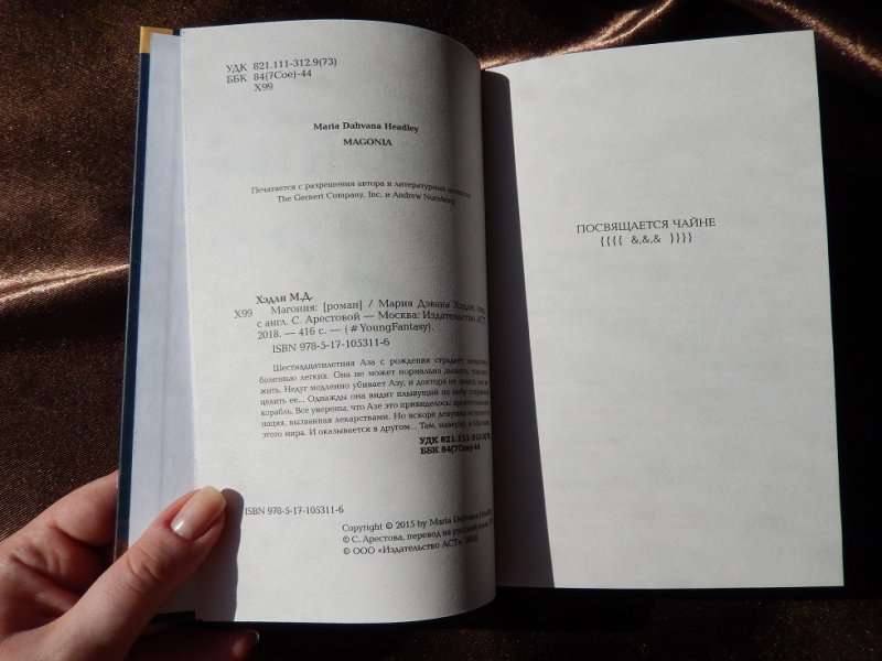 Объем, стр. 416 ISBN 978-5-17-105311-6 Автор Хэдли Мария Дэвана, Арестова Светлана Переводчик Арестова Светлана Серия #YoungFantasy Язык Русский Минимальный возраст 16+ Год издания книги 2018 Тип обложки Твердый переплет Иллюстрации Без иллюстраций Вес, г 384г Размеры 206х135х35 мм - Отзывы