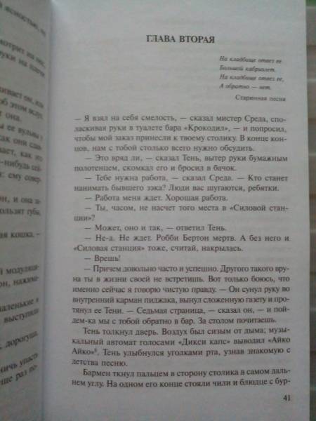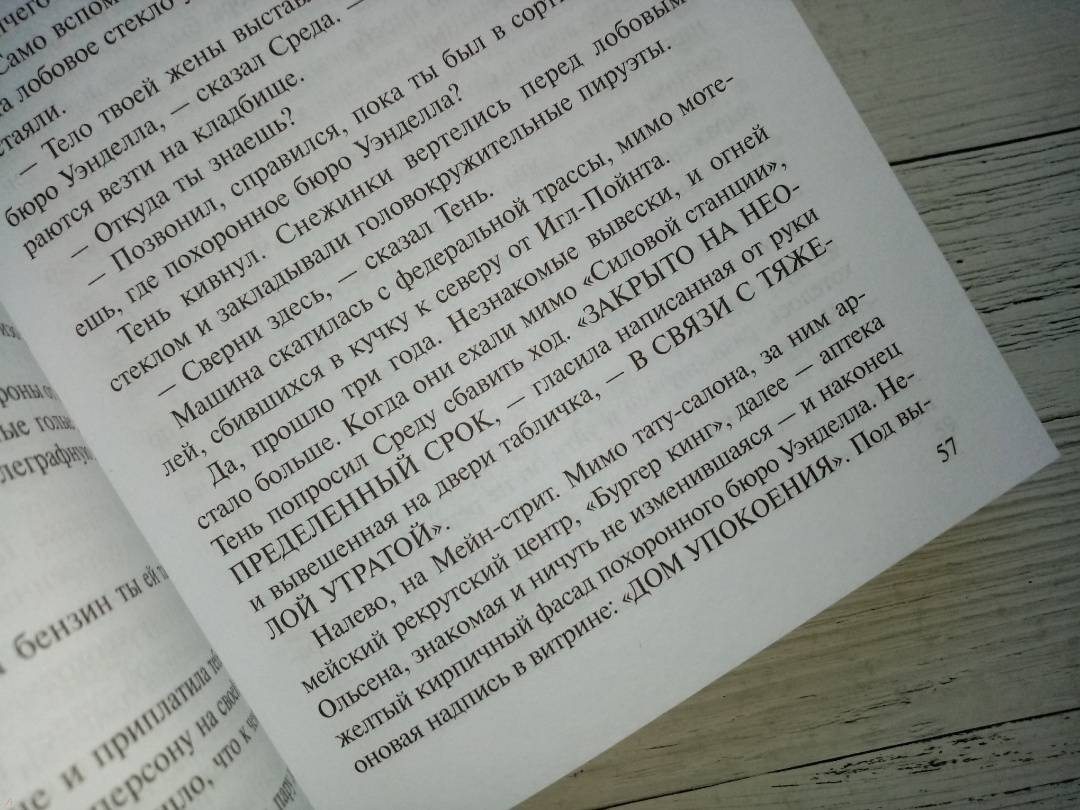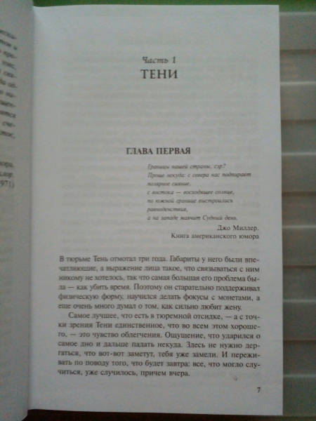 СвернутьБрошенный за решетку на три долгих года, неразговорчивый парень по прозвищу Тень терпеливо ждет того дня, когда он сможет вернуться домой, в городок Игл-Пойнт штата Индиана.Он больше не боится того, что может принести завтрашний день, и хочет лишь воссоединиться с любимой женой Лорой и начать новую жизнь.Но всего за несколько дней до его освобождения Лора и лучший друг Тени гибнут в автокатастрофе.Жизнь Тени теряет всякий смысл, и он принимает неожиданное предложение поступить на службу к загадочному попутчику по имени мистер Среда.Тем более что этот насмешливый мошенник, кажется, знает о Тени больше, чем он сам.Оказывается, что жизнь в качестве телохранителя, водителя и мальчика на побегушках мистера Среды куда интереснее — и опаснее, — чем мог предположить Тень.Вскоре он узнает, что прошлое никогда не умирает... и что под спокойной поверхностью повседневности зарождается буря — эпическая война за саму душу Америки.А сам он стоит прямо на ее пути…Заключенный Тень терпеливо ждет дня освобождения, мечтая об одном — вернуться в родной городок и воссоединиться с любимой женой Лорой. Но, когда до желанной даты остается всего несколько дней, Лора и лучший друг Тени погибают в автокатастрофе. Жизнь Тени теряет смысл, но тут на горизонте появляется странный незнакомец, мистер Среда, который знает о Тени гораздо больше, чем говорит.