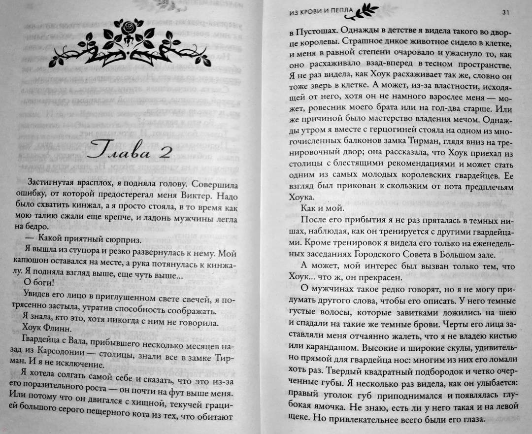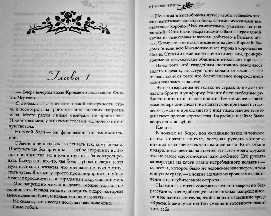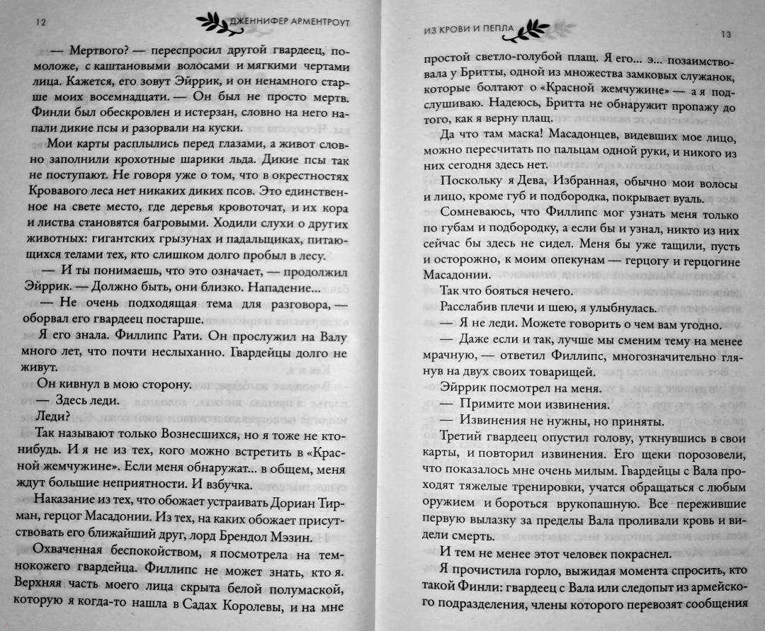 ОписаниеДева…Жизнь Поппи никогда ей не принадлежала - она была избрана для особой миссии еще при рождении. Жизнь Девы - это одиночество. Она неприкасаема. На нее не смотрят. С ней не говорят. Удовольствие для нее - под запретом. В ожидании своего Восхождения Поппи борется со злом, которое погубило ее семью, а не ждет милости от богов, хотя у нее никогда и не было выбора.Долг…Будущее всего королевства зависит от Поппи, но сама она не знает, чего хочет на самом деле. Потому что у Дев есть сердце. И душа. И желание. И когда златоглазый гвардеец Хоук удостаивается чести быть связанным с ней, Поппи понимает, что долг и судьба для нее теперь неразрывно связаны с желанием и жаждой. Хоук разжигает ее злость, заставляет сомневаться во всем, во что она верит, и дразнит запретными плодами.Королевство…Покинутое богами, но внушающее страх смертным, павшее королевство возрождается снова, намереваясь забрать то, что принадлежит ему по праву, с помощью насилия и жестокости. Чем ближе час расплаты, тем сильнее размывается граница между запретным и правильным. И когда пропитанные кровью нити, которые держат мир Поппи, начнут рваться, она рискует потерять не только свое сердце и благословение богов, но и свою жизнь."Дженнифер Арментроут обладает суперсилой контролировать мои эмоции словами. От вздохов и слез до нетерпения узнать, что же на следующей странице. Я не могла перестать читать историю Хоука и Поппи, и вы тоже не сможете". Бриджит Кеммерер, автор романа-бестселлера "Проклятие одиночества и тьмы""Экшн, приключения, сексуальность и ангст! В "Из крови и пепла" есть это все и даже в двойной порции… Читайте. Эту. Книгу! Вы будете ей одержимы!" Тиджан, автор бестселлеров по версии New York TimesСвернутьДева…Жизнь Поппи никогда ей не принадлежала - она была избрана для особой миссии еще при рождении. Жизнь Девы - это одиночество. Она неприкасаема. На нее не смотрят. С ней не говорят. Удовольствие для нее - под запретом. В ожидании своего Восхождения Поппи борется со злом, которое погубило ее семью, а не ждет милости от богов, хотя у нее никогда и не было выбора.Долг…Будущее всего королевства зависит от Поппи, но сама она не знает, чего хочет на самом деле. Потому что у Дев есть сердце. И душа. И желание. И когда златоглазый гвардеец Хоук удостаивается чести быть связанным с ней, Поппи понимает, что долг и судьба для нее теперь неразрывно связаны с желанием и жаждой. Хоук разжигает ее злость, заставляет сомневаться во всем, во что она верит, и дразнит запретными плодами.Королевство…Покинутое богами, но внушающее страх смертным, павшее королевство возрождается снова, намереваясь забрать то, что принадлежит ему по праву, с помощью насилия и жестокости. Чем ближе час расплаты, тем сильнее размывается граница между запретным и правильным. И когда пропитанные кровью нити, которые держат мир Поппи, начнут рваться, она рискует потерять не только свое сердце и благословение богов, но и свою жизнь."Дженнифер Арментроут обладает суперсилой контролировать мои эмоции словами. От вздохов и слез до нетерпения узнать, что же на следующей странице. Я не могла перестать читать историю Хоука и Поппи, и вы тоже не сможете". Бриджит Кеммерер, автор романа-бестселлера "Проклятие одиночества и тьмы""Экшн, приключения, сексуальность и ангст! В "Из крови и пепла" есть это все и даже в двойной пор