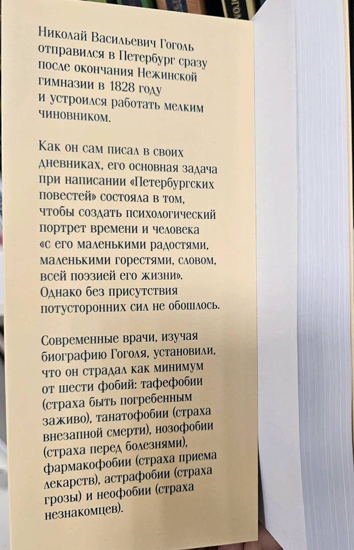 ОписаниеО Петербург, невероятный и притягивающий магнитом! Здесь как нигде можно заметить, как среди романтичных крыш неторопливо едет и ваша собственная, если воспарить над городом очарованной душой. Николай Васильевич Гоголь тоже воспарил - а потом спустился обратно, взялся за перо и стал живописать его жителей. У мастера слова получилось именно "живо" - словно их можно потрогать и даже поговорить с ними. Конечно, если вас не испугают их странности (убежавший нос, например...). Еще вчера вы не обратили бы на этих людей никакого внимания, а теперь никогда не забудете. И обязательно узнаете их, когда повстречаете... В книгу вошли знаменитые "Петербургские повести", а также отрывки и наброски из незавершенных произведений Гоголя того же периода.О Петербург, невероятный и притягивающий магнитом! Здесь как нигде можно заметить, как среди романтичных крыш неторопливо едет и ваша собственная, если воспарить над городом очарованной душой. Николай Васильевич Гоголь тоже воспарил - а потом спустился обратно, взялся за перо и стал живописать его жителей. У мастера слова получилось именно "живо" - словно их можно потрогать и даже поговорить с ними. Конечно, если вас не испугают их странности (убежавший нос, например...). Еще вчера вы не обратили бы на этих людей никакого внимания, а теперь никогда не забудете. И обязательно узнаете их, когда повстречаете... В книгу вошли знаменитые "Петербургские повести", а также отрывки и наброски из незавершенных произведений Гоголя того же периода.