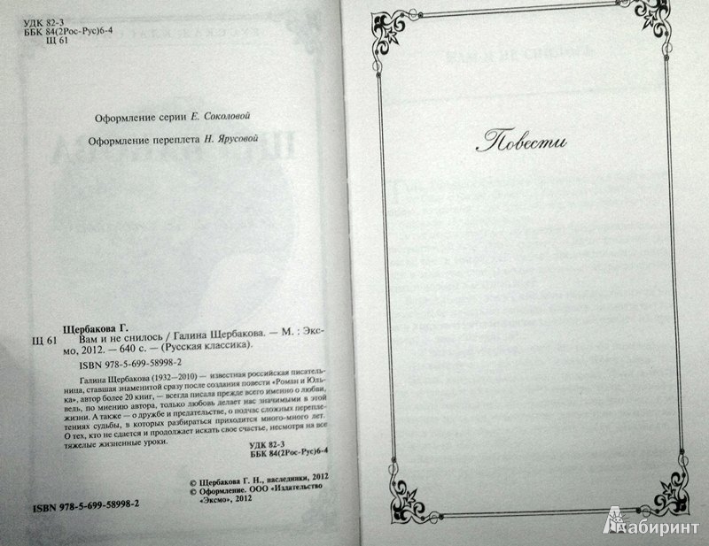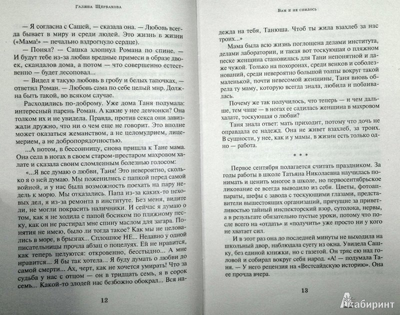 --Галина Щербакова: Вам и не снилосьРусская классическая и современная литератураДетектив. Остросюжетная литератураЗарубежная художественная литератураРусская художественная литератураФэнтезиДраматургияПоэзияПриключенияФантастикаЭпос и фольклорКлассическая прозаАфоризмыИсторическая прозаДетективыБасниСентиментальная прозаОтечественный боевикСовременная прозаМолодежная литератураЗарубежная классическая и современная литература
