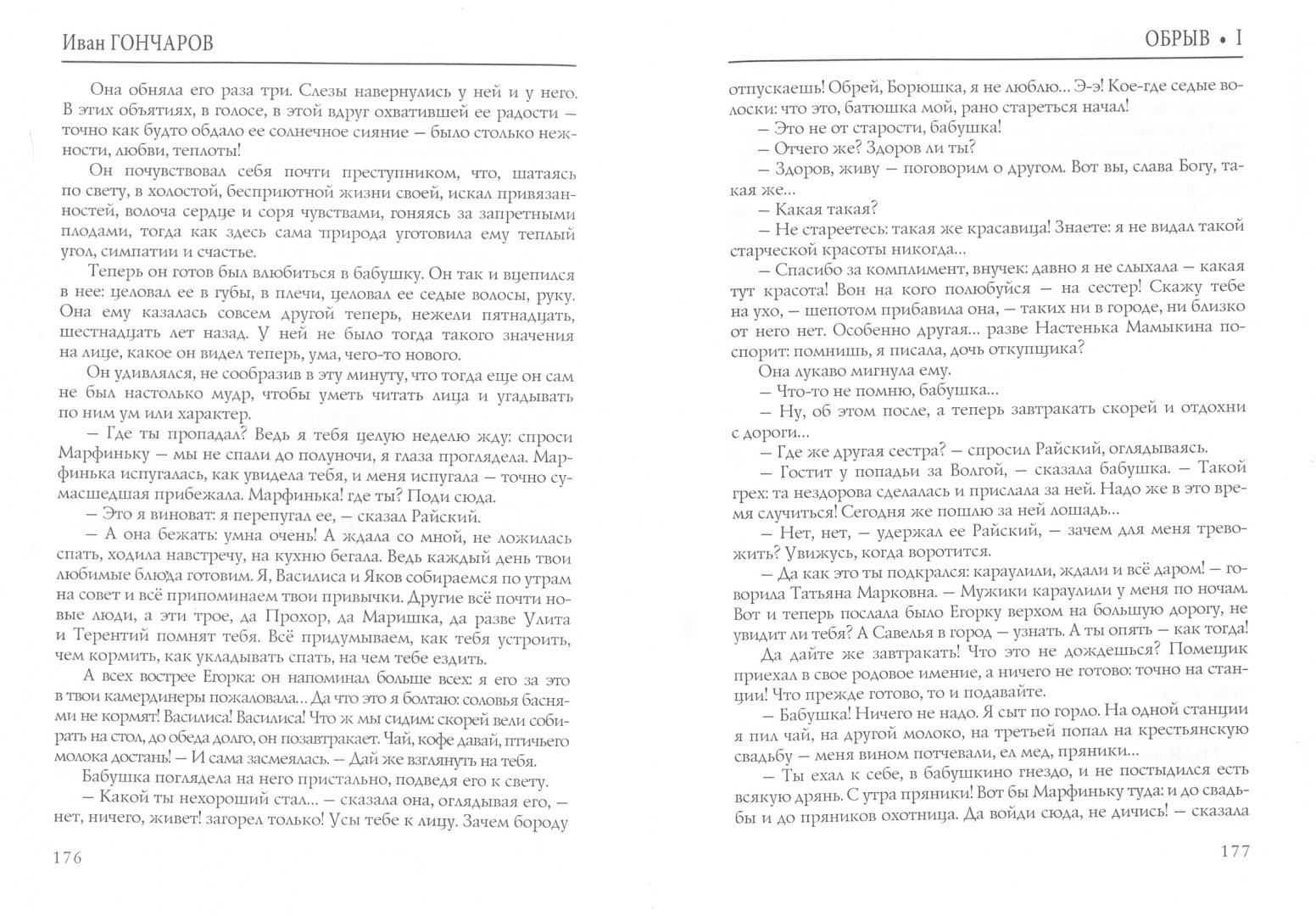 ОписаниеИван Александрович Гончаров (1812-1891) - русский писатель XIX века, литературный критик, публицист, автор романа-бестселлера "Обломов" мирового масштаба. "Обрыв" - блестящий роман, образец психологической прозы, в котором на фоне длительного застоя русского общества XIX века сталкиваются два колоритных персонажа: циничный нигилист Марк и независимая гордая Вера. Трагичная история болезненной любви, мук выбора между чувством и долгом, переосмысления прежней жизни и её ценностей близка и понятна современным читателям.Иван Александрович Гончаров (1812-1891) - русский писатель XIX века, литературный критик, публицист, автор романа-бестселлера "Обломов" мирового масштаба. "Обрыв" - блестящий роман, образец психологической прозы, в котором на фоне длительного застоя русского общества XIX века сталкиваются два колоритных персонажа: циничный нигилист Марк и независимая гордая Вера. Трагичная история болезненной любви, мук выбора между чувством и долгом, переосмысления прежней жизни и её ценностей близка и понятна современным читателям.