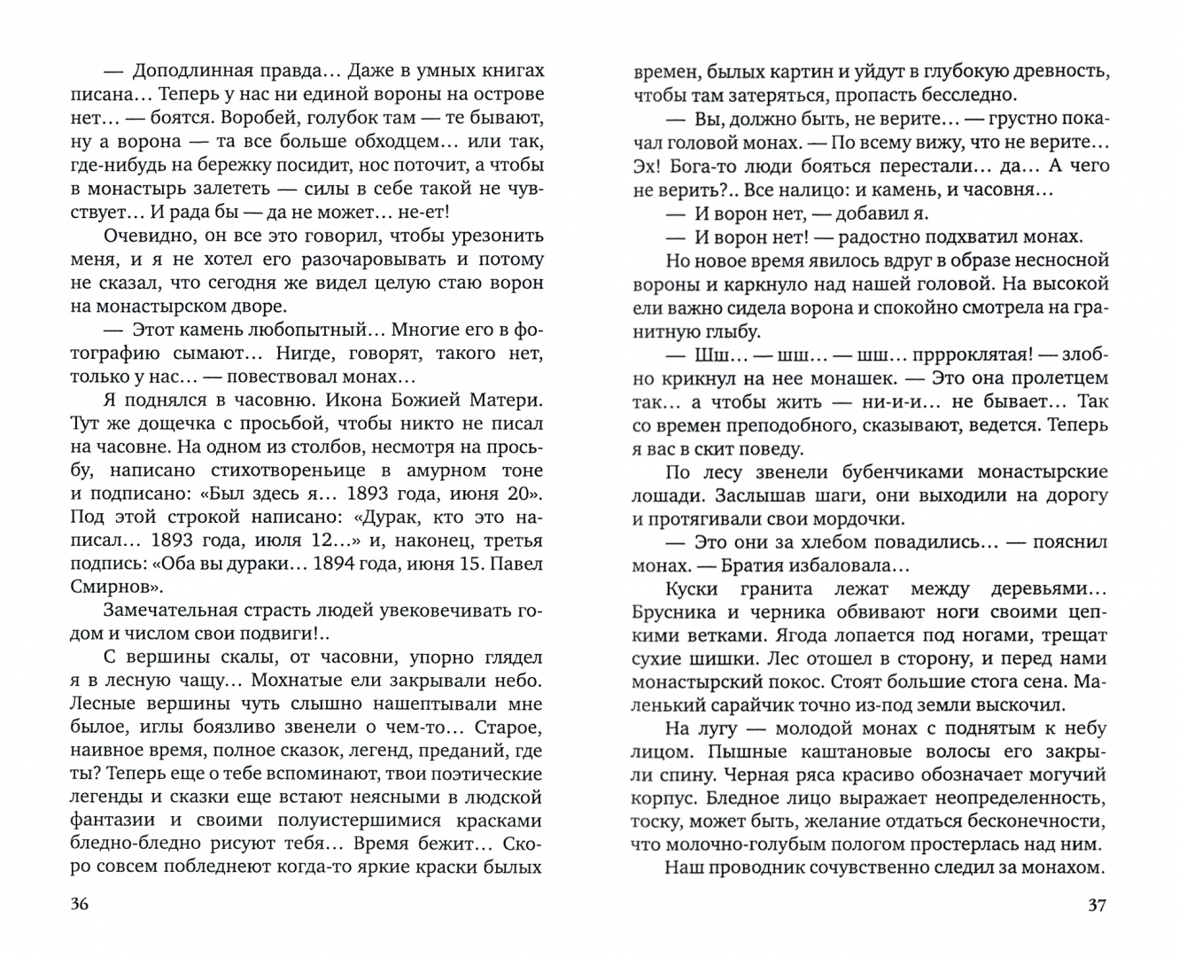 ОписаниеВ 1895 г. студент Иван Шмелев — как кажется, случайно, — выбирает для свадебного путешествия остров Валаам. «Эта поездка не прошла бесследно: я вынес много впечатлений, ощущений — и вышла книжка. Эта первая моя книжка, принесшая мне и радость, и тревоги… Перед войной мне предлагали переиздать ее, — я отказался: слишком она юна, легка. Ныне я не писал бы так; но суть осталась и доныне: светлый Валаам», — так вспоминал о своем путевом очерке «На скалах Валаама», вышедшем в 1897 г., уже зрелый писатель.Спустя сорок лет (1935 г.) с теплотой и нежностью состоявшийся прозаик, номинант Нобелевской премии по литературе (1931) описывает путешествие, совершенное в молодости, — но образы из юности проходят оценку глубоко верующего человека, прожившего трудную жизнь.Очерк «На скалах Валаама» увидел свет в 1897 г., «Старый Валаам» в 1935 г.В 1895 г. студент Иван Шмелев — как кажется, случайно, — выбирает для свадебного путешествия остров Валаам. «Эта поездка не прошла бесследно: я вынес много впечатлений, ощущений — и вышла книжка. Эта первая моя книжка, принесшая мне и радость, и тревоги… Перед войной мне предлагали переиздать ее, — я отказался: слишком она юна, легка. Ныне я не писал бы так; но суть осталась и доныне: светлый Валаам», — так вспоминал о своем путевом очерке «На скалах Валаама», вышедшем в 1897 г., уже зрелый писатель.Спустя сорок лет (1935 г.) с теплотой и нежностью состоявшийся прозаик, номинант Нобелевской премии по литературе (1931) описывает путешествие, совершенное в молодости, — но образы из юности проходят оценку глубоко верующего человека, прожившего трудную жизнь.Очерк «На скалах Валаама» увидел свет в 1897 г., «Старый Валаам» в 1935 г.