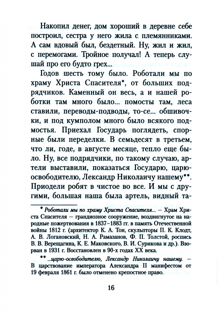 ОписаниеВ этом повествовании все просто, как сама Россия, как русская душа, как русский быт. Просто и в то же время насыщено или как бы проникнуто изнутри сияющим светом: светлые, прозрачно-лучащиеся слова... светло-ласковый, всё время кротко, облегченно, почти вздыхающий стиль и ритм... образы солнечного лета, озаренной природы... и светлые, легкие души, детски-чистые...В этом повествовании все просто, как сама Россия, как русская душа, как русский быт. Просто и в то же время насыщено или как бы проникнуто изнутри сияющим светом: светлые, прозрачно-лучащиеся слова... светло-ласковый, всё время кротко, облегченно, почти вздыхающий стиль и ритм... образы солнечного лета, озаренной природы... и светлые, легкие души, детски-чистые...
