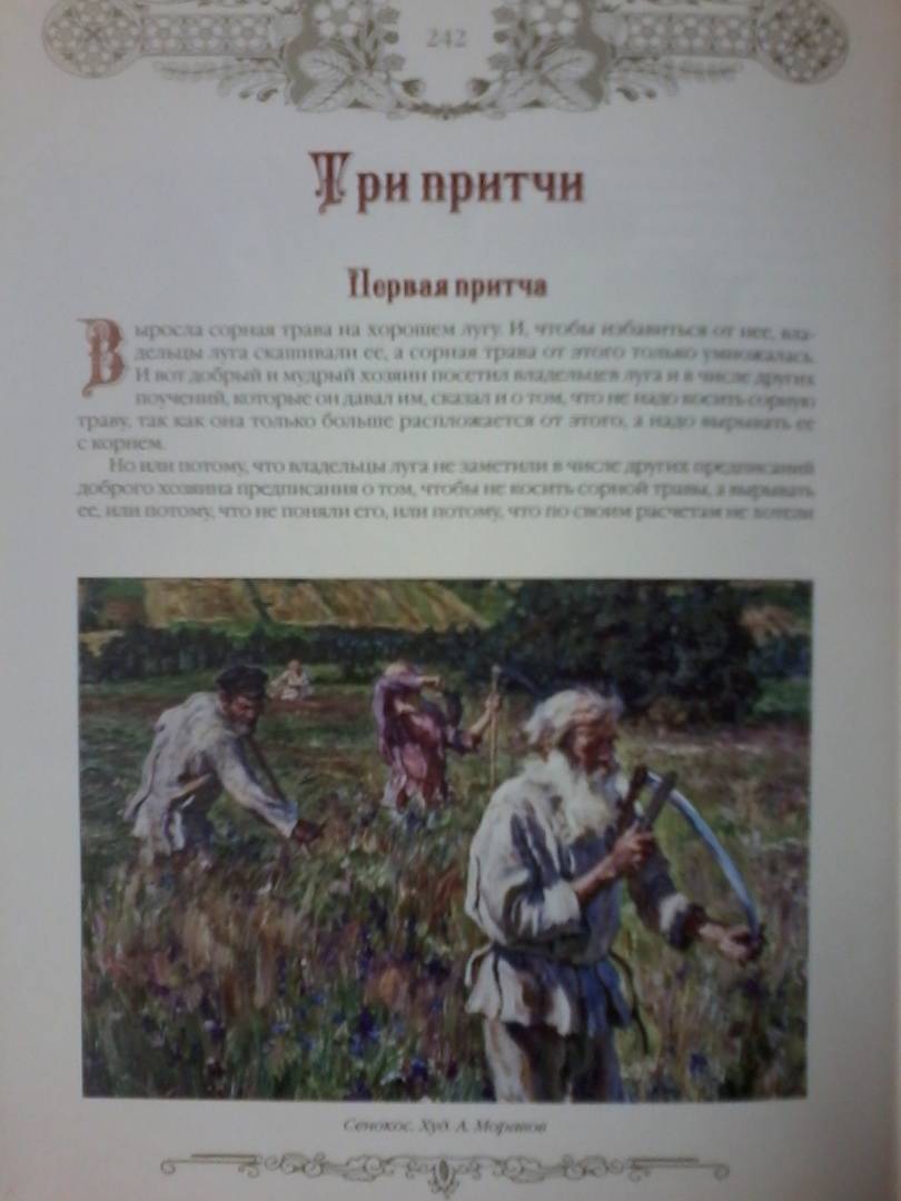 ОписаниеЛев Толстой - один из "универсальных гениев" русской литературы, оставивший свой след практически во всех жанрах - от поэзии до философской прозы. Однако была у Толстого еще одна грань таланта, миссия, которую сам писатель считал важнейшей: учитель и воспитатель подрастающего поколения.В этой книге собрана лучшая часть педагогического наследия Толстого, адресованная не только детям, но и взрослым: басни, сказки, нравоучительные рассказы и притчи "для народного чтения", опубликованные Л. Толстым в двух больших циклах: "Русские книги для чтения" и "Народные рассказы". Вобрав в себя все художественные достоинства прозы Толстого, эти произведения и сегодня дают нам бесценные уроки нравственности, добра, трудолюбия и духовности"Сказки и притчи" Л. Толстого - прекрасная книга для семейного чтения, украшенная богатым изобразительным рядом: классикой русской книжной иллюстрации XIX-XX веков и русской живописью.Лев Толстой - один из "универсальных гениев" русской литературы, оставивший свой след практически во всех жанрах - от поэзии до философской прозы. Однако была у Толстого еще одна грань таланта, миссия, которую сам писатель считал важнейшей: учитель и воспитатель подрастающего поколения.В этой книге собрана лучшая часть педагогического наследия Толстого, адресованная не только детям, но и взрослым: басни, сказки, нравоучительные рассказы и притчи "для народного чтения", опубликованные Л. Толстым в двух больших циклах: "Русские книги для чтения" и "Народные рассказы". Вобрав в себя все художественные достоинства прозы Толстого, эти произведения и сегодня дают нам бесценные уроки нравственности, добра, трудолюбия и духовности"Сказки и притчи" Л. Толстого - прекрасная книга для семейного чтения, украшенная богатым изобразительным рядом: классикой русской книжной иллюстрации XIX-XX веков и русской живописью.