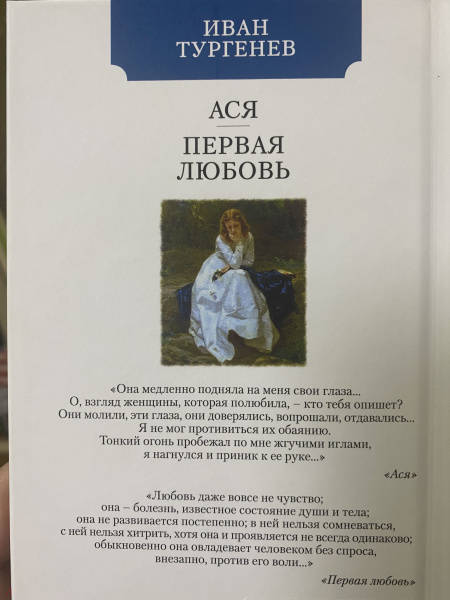 ОписаниеШедевры лирической прозы И.С. Тургенева, поэтичные и трогательные повести «Ася» и «Первая любовь» объединяют тема первой любви и интонация светлой грусти воспоминаний. Искренние истории о самых тонких человеческих чувствах и переживаниях, герои которых проходят «испытание любовью», проникнуты сожалением о неосуществимости прекрасных надежд юности.Шедевры лирической прозы И.С. Тургенева, поэтичные и трогательные повести «Ася» и «Первая любовь» объединяют тема первой любви и интонация светлой грусти воспоминаний. Искренние истории о самых тонких человеческих чувствах и переживаниях, герои которых проходят «испытание любовью», проникнуты сожалением о неосуществимости прекрасных надежд юности.